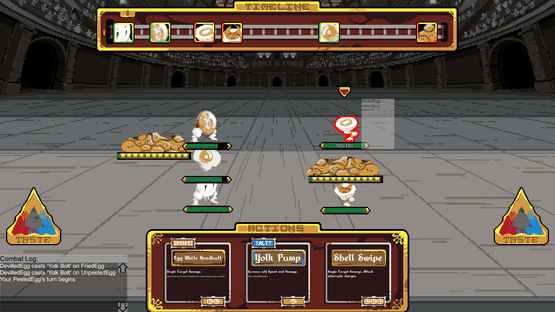 A hybrid between Turn-Based Tactics and Cooking Mini-Games where food you cook turns into powerful Gladieaters for you to command. Cook your team from Eggs, Pastries and Vegetables - balancing the Taste of the team between Sweet, Salty and Umami - to unlock powerful taste twists.