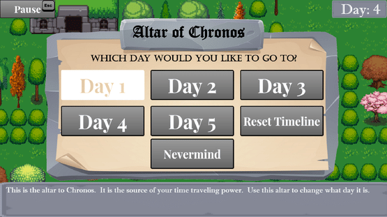 Five days is a fully open world, no limits time travel puzzle adventure. This game isn't just a time loop of the same day on repeat, this game lets you travel between five different days. Use your knowledge of the future and ability to travel to the past to assassinate a heavily defended king.