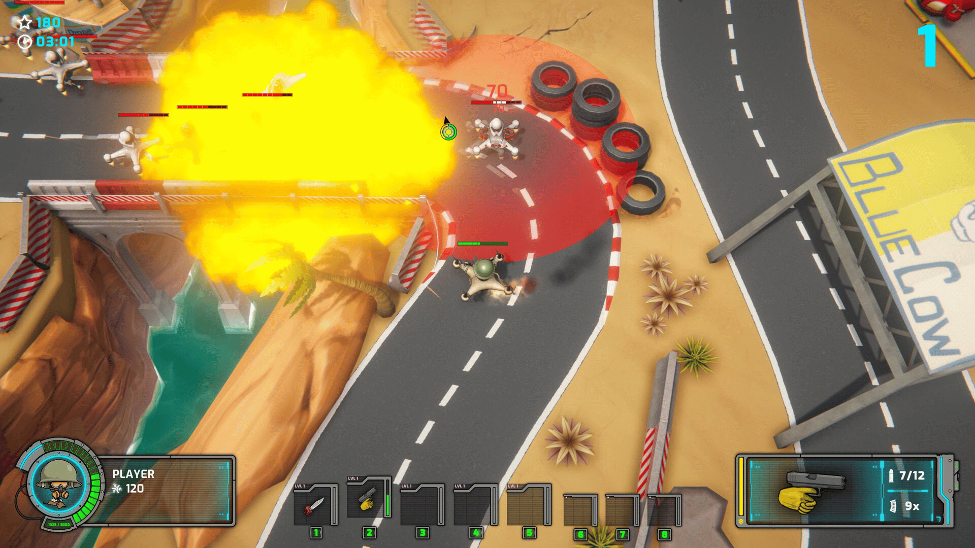 Battle Drones: Red Rock Resistance is a 3D top-down drone shooter game set in a reimagined version of Red Rock, New Mexico. Upgrade your drone, improve your loadout and defend yourself against the ominous intentions of the A-EYE. How long will you survive?