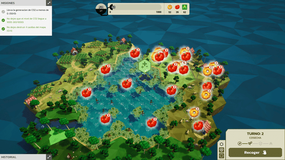 You have 10 years to make your territory sustainable or it won't survive the great heat of the future. Reap your harvest, solve typical problems of the zone and reinvest in the land in a strategic way to create conscience in your people about the necessary changes for their survival.