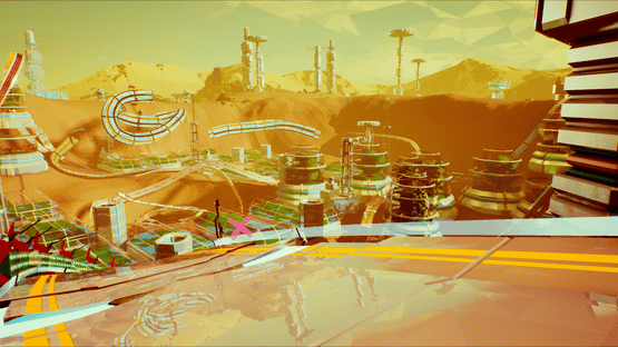 The Solar Redout Racing League landed on Mars! The complex is situated on the Red Planet, with its dusty deserts and weird rock formations. The low gravity played a major role in experimenting verticality and driving on the exterior of the common racing tubes.
