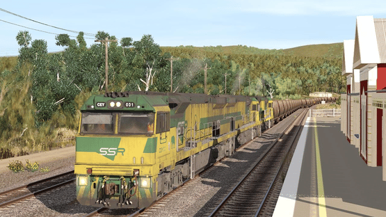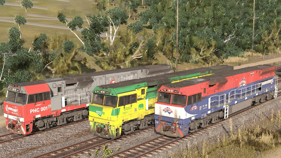 Drive the Australian C44Aci diesel locomotives, in the Crawfords (PHC class), Fletchers/SSR (FIE class), and Southern Shorthaul Railroad (CEY class) liveries, each with multiple weathering levels and custom features.