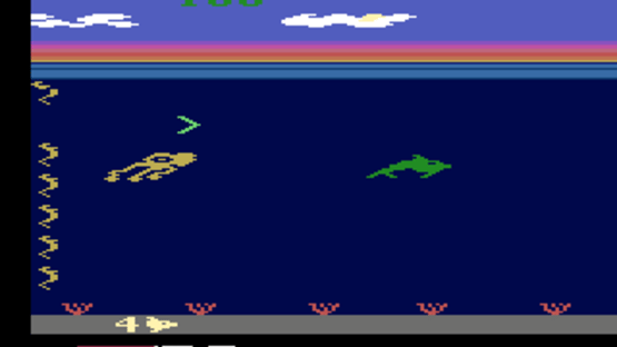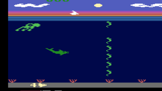 Listen! An endangered dolphin is calling you! Only by learning the dolphin's sonic language can you guide her through schools of seahorses, battling a monstrous squid, to gain magic powers from and elusive seagull. Hurry! Lend an ear... You will guide your dolphin through openings in the seahorse schools by listening to sonic tones and catching waves. Pay attention to the following: THE SEAGULL: Periodically, a seagull will fly overhead. You'll know he's coming when the squid changes color. Have your dolphin leap up, touch the seagull and then quickly turn and chase the squid. This is the best way to gain points. Also, the game resets at the next difficulty level putting distance between your dolphin and the squid. THE SLIP: Another great way to outsmart the squid is by giving him "the slip". If the squid is right on your tail, wait until he catches a good wave. Then, reverse your dolphin's direction and swim under him immediately. As long as the squid's good wave remains on the screen, he won't be able to reverse and catch you. SCORING: Points are earned in a variety of ways. Every time your dolphin touches a seagull, or a squid, you score points. The number of points depends on the color of the squid. Scoring peaks at 800 per seagull and 8000 per squid. Also, you'll score 100 points each time your dolphin catches a good wave or each time you run the squid into a bad wave. And, when your dolphin swims through the seahorses, you'll score 0 to 50 points, depending on your degree of accuracy in getting her through the opening.
