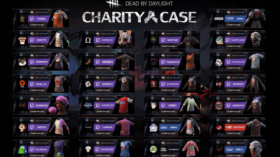 The Charity Case is a collection of 26 cosmetic items for many of the Dead by Daylight survivors and killers. It contains 20 brand new customization options based on your favorite broadcasters and 6 previously exclusive items from old friends.