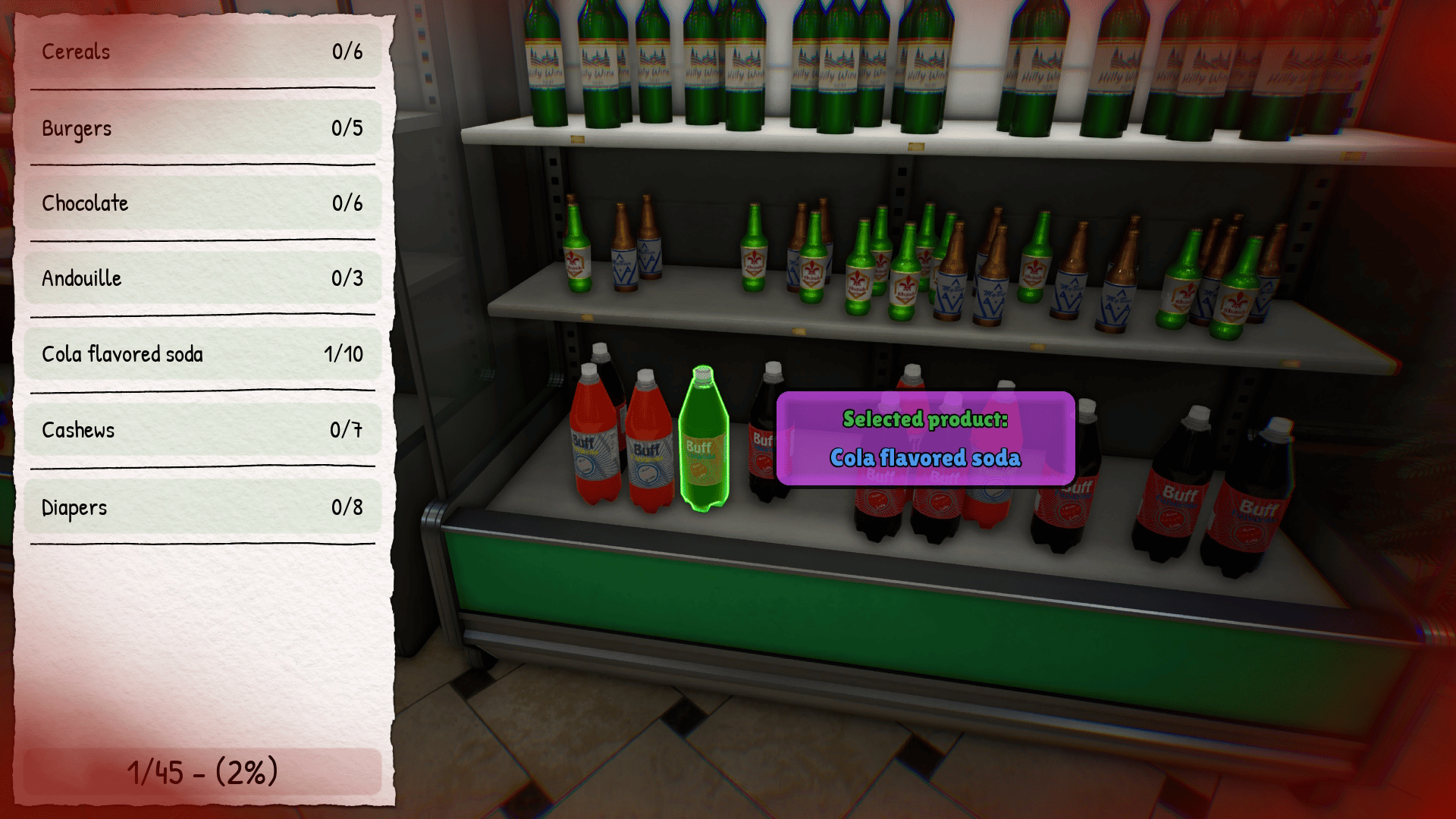 The supermarket has just closed, hurry up to find and collect all the products on your list without getting caught by the security guard! A fast paced stressful action game with 2 maps and 18 levels with increasing difficulty, made for speedrunning.