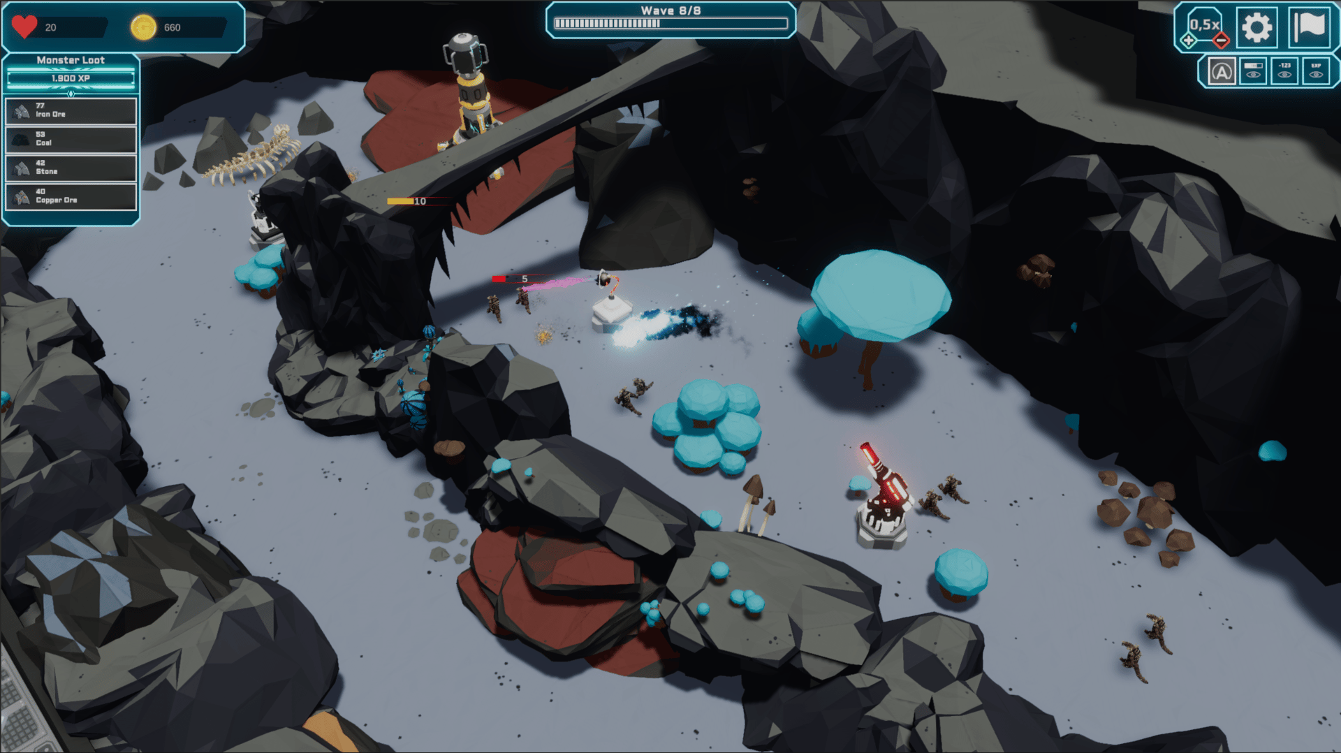 Project Astra Dominium is a Tower Defense game with Basebuilding and Automation elements. Build up your base to become a supply hub for Earth's desperately needed materials, gather resources while defending against an unknown alien threat and improve your tower's and AI capabilities.