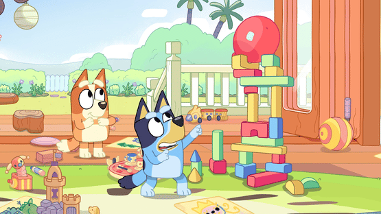 Help Bluey and Bingo play Keepy Uppy with the red balloon.