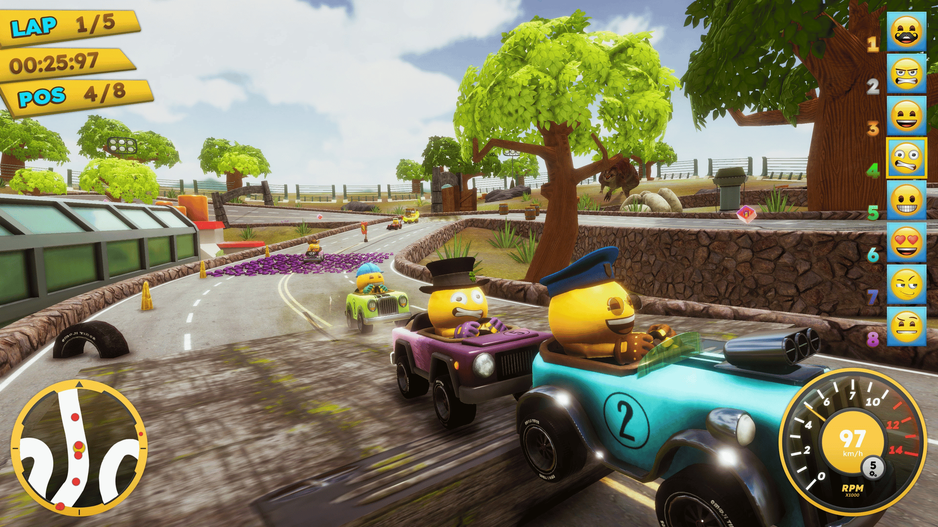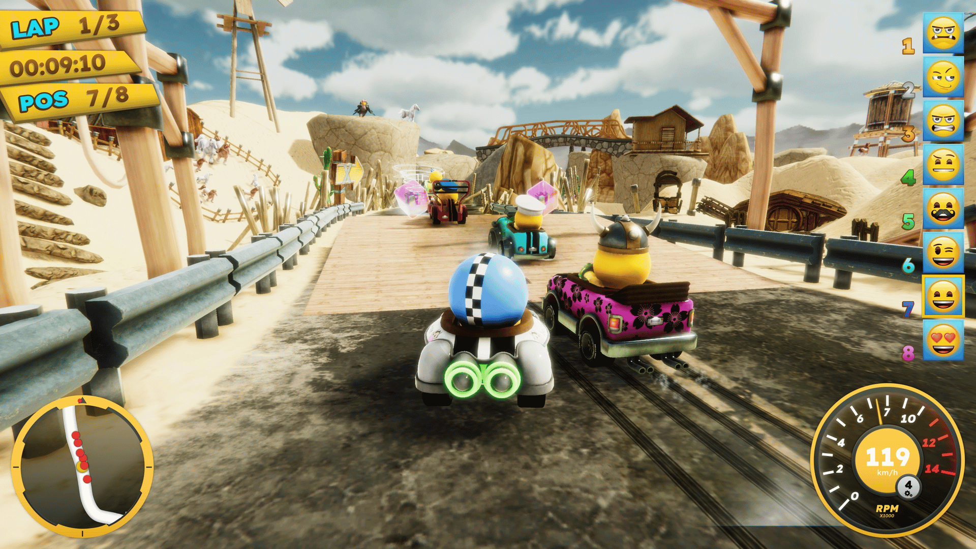 Get behind the wheel with up to four players and race across 16 intense racetracks. The unique emoji generator also gives you the opportunity to create your own personal emoji racer from thousands of combinations. Let yourself be inspired by the colorful tracks with great music, funny sound effects and of course countless emoji's. Great emoji power-ups like poop or rocket are also available!