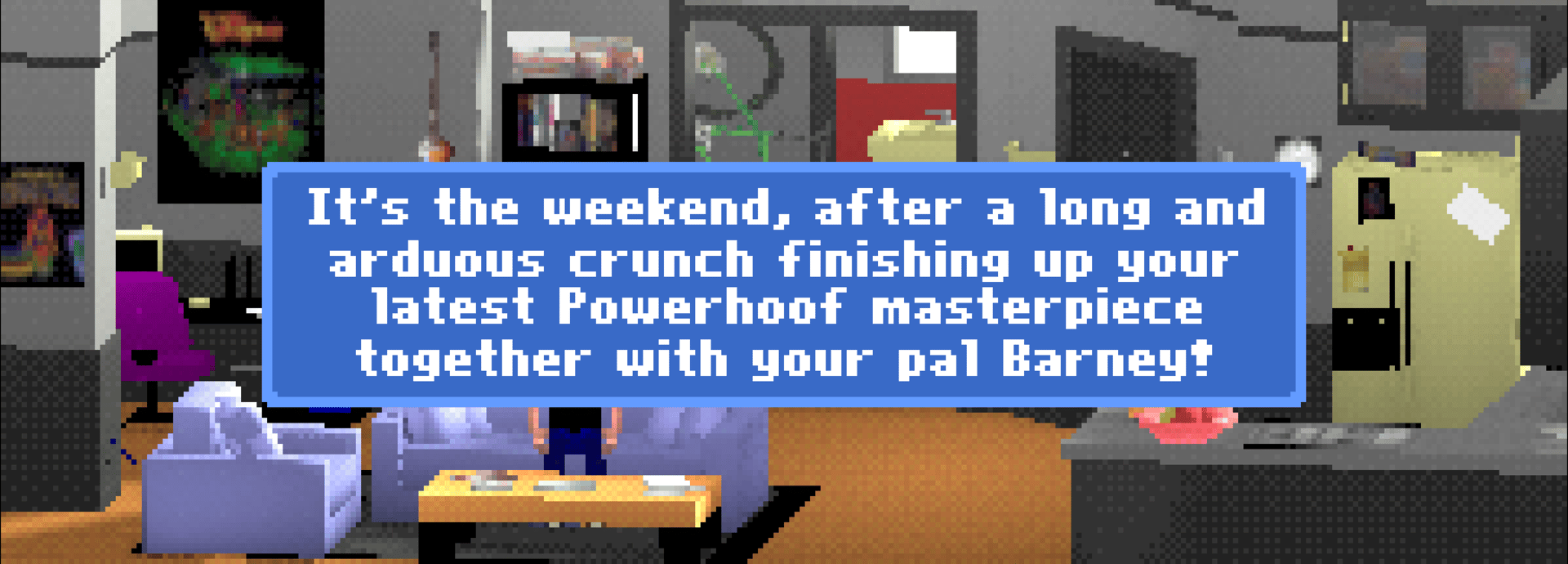 Powerhoof just released their latest masterpiece, and now Dave wants to celebrate by taking a day off to relax! Alas, life isn't always that simple, especially in Hoofield...