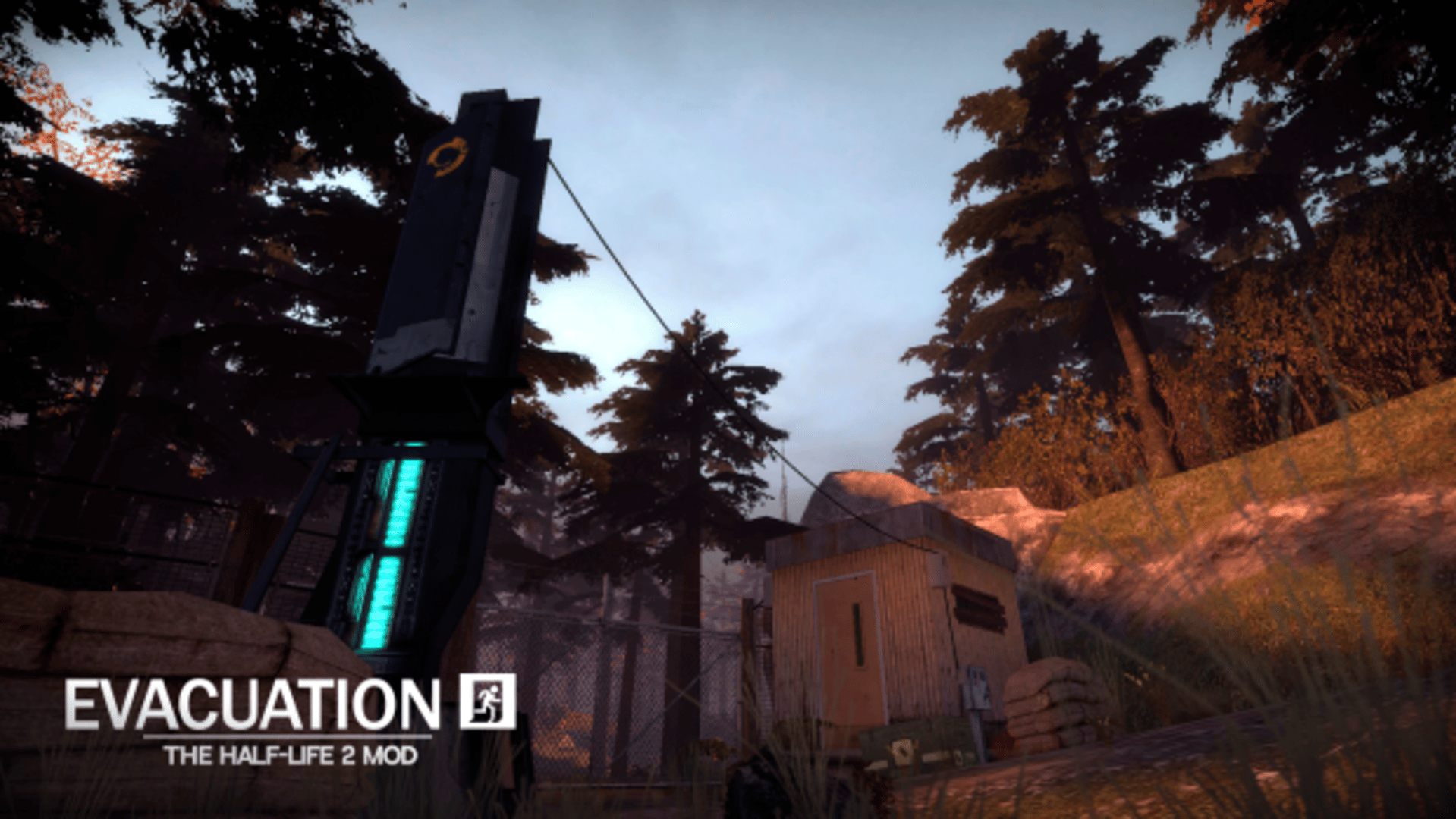 Evacuation is an unofficial story-driven add-on for Half-life 2, telling the story of an rebel who crashes on a helicopter in the woods. Having miraculously survived, the hero picks up a walkie-talkie and decides to escape from the forest, which was attacked by the Combine.