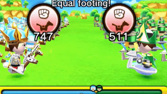 Warrior's Way is a battle simulation game developed by Spike Chunsoft. Players assume the role of a general on a quest to conquer the world one country at a time. Players amass armies either by encountering other players on StreetPass or using Play Coins to recruit mercenaries, before taking on the leaders of each country. Battles follow a rock, paper, scissors mechanic, in which players assign soldiers to three classes, with each have strengths and weaknesses against the other classes, and pit them against the opponent, the first to win two matches winning the battle and earning a portion of their soldiers. Defeating certain leaders earns materials which can be used to upgrade the player's castle, granting new options. Players encountered on StreetPass will be monarchs if they have StreetPass Battle. The player may choose to greet the monarch peacefully or challenge them to a battle in order to earn more soldiers.