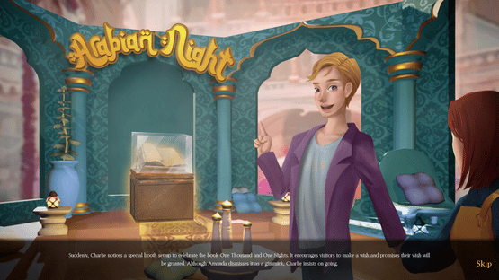 Step through the pages of a magical book and follow Amanda and Charlie on their journey into a world of genies' lamps, bustling bazaars, and cunning sorcerers in this Match-3 adventure unlike anything you've seen before!