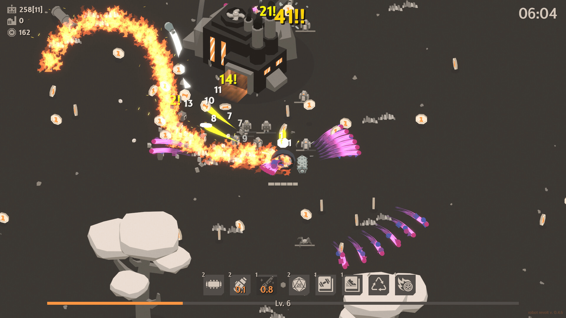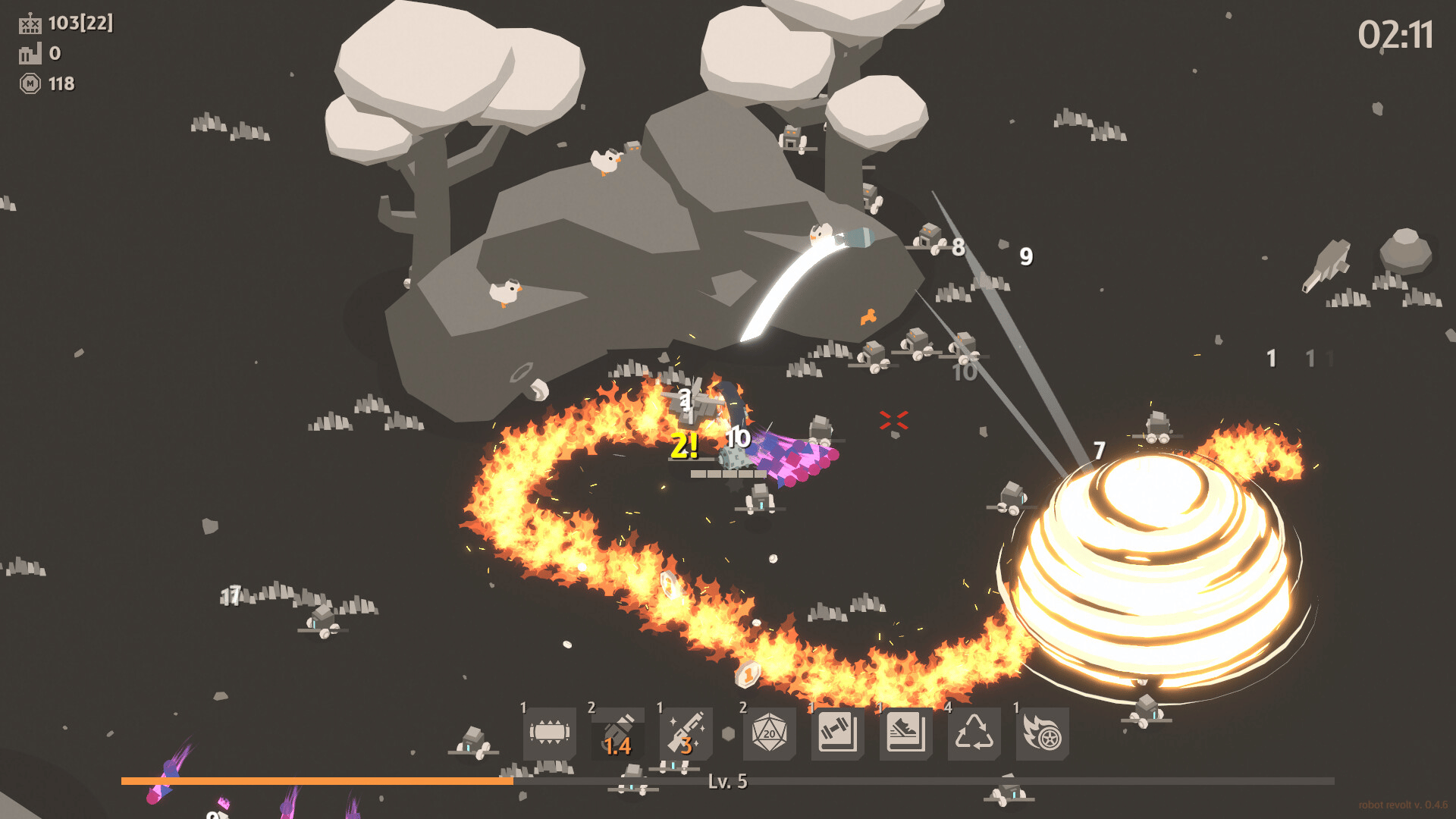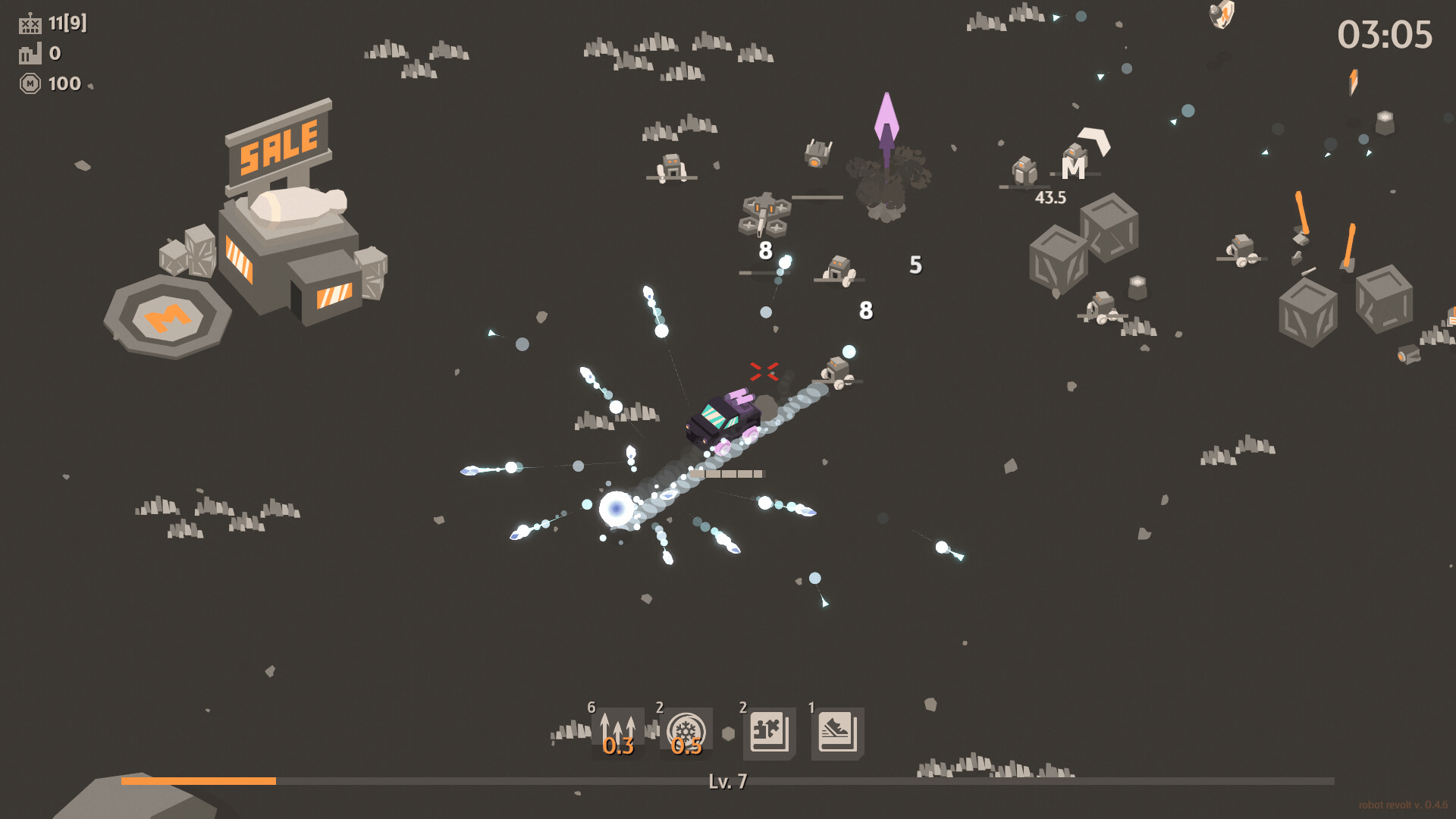 Shoot, steer and survive as an armored vehicle versus a rebellious swarm of robots in this reverse bullet hell. Choose from a diverse collection of items and weapons, each with their own upgrade path. Clear abandoned factories to earn traits and make unique builds.