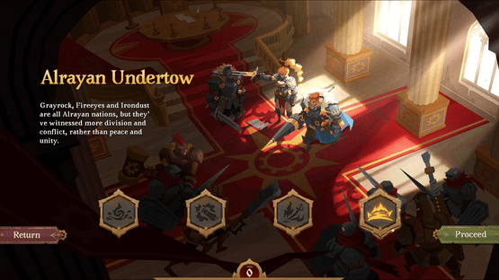 Once a united race of the Alrayan descent, Grayrock, Fireeyes and Irondust are now in constant conflict. Grayrock is home to the oldest knight army. Fireeyes has the most cutting-edge technologies. Irondust demonstrates a resolve of steel. Clashes are inevitable - Which nation will victory favor?