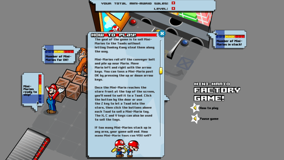 Mini-Mario Factory Game! was an online Adobe Flash game published by Nintendo to promote the release of Mario vs. Donkey Kong on the Game Boy Advance. It could be played from the official Mario vs. Donkey Kong website.