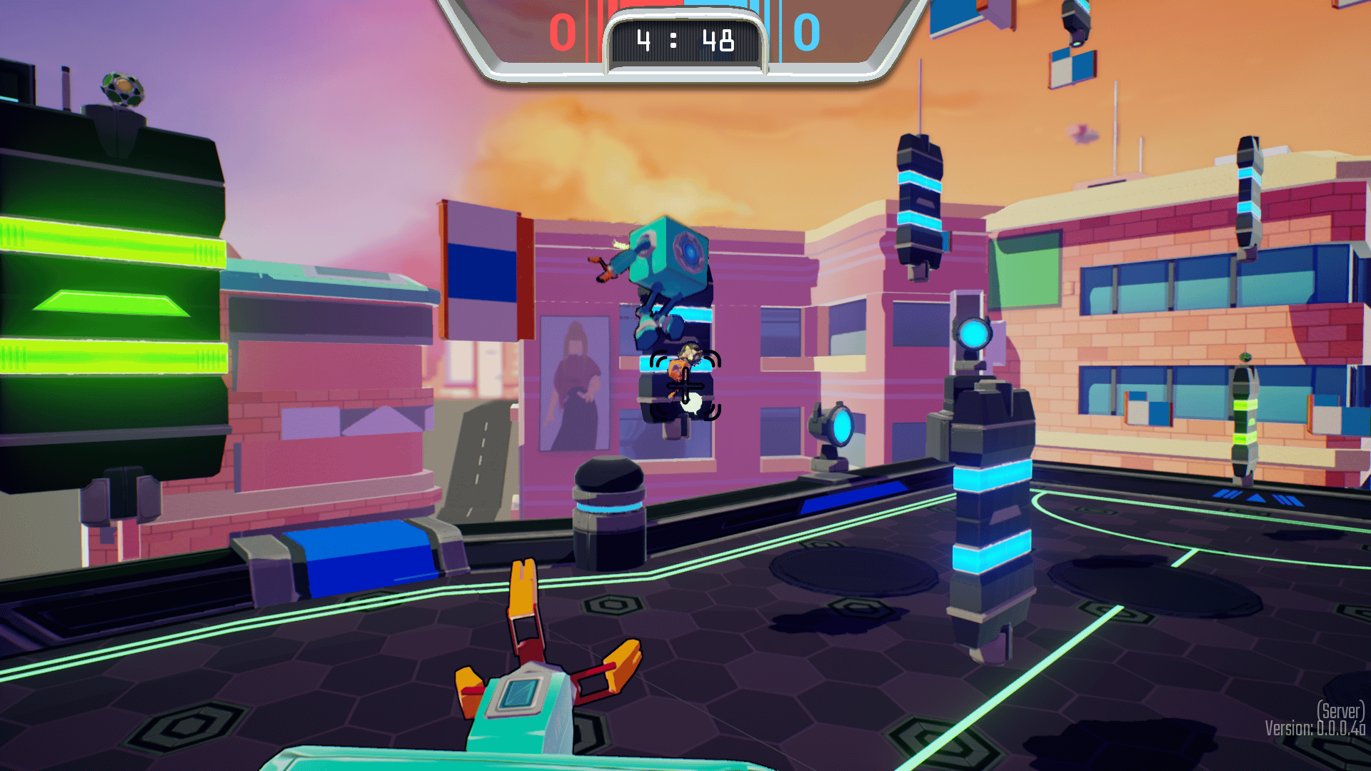 A casual multiplayer sports game that features a combination of rugby and dodgeball elements with a grappling hook mechanic.