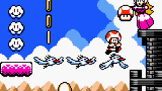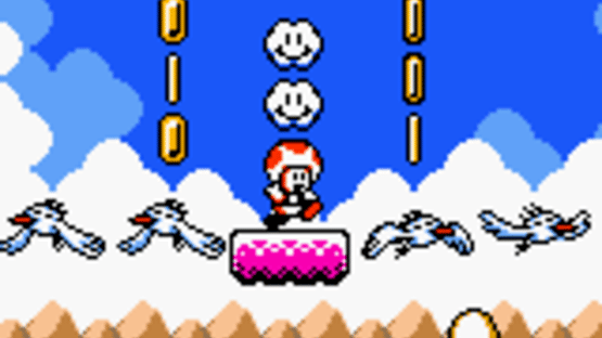 Toad delivers items from Mario to Princess Peach by using a bridge of Goonies, which sometimes dive at passing balloons. The name of the minigame is from the original game, which involved a bridge made of turtles.