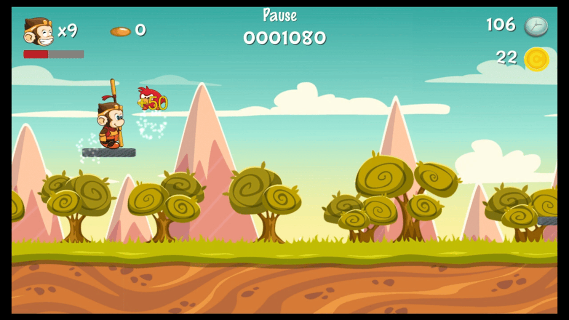 ‘Kong Hero' is a 2D platform jumping game with cartoon style. The player controls a cute little monkey through many difficulties and finally reaches the destination.