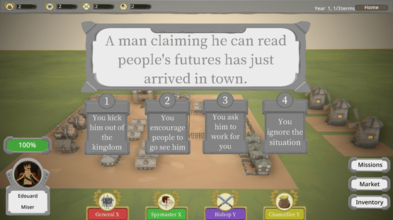 Not born to be King is a simulation game where you embody a medieval king and try to lead your kingdom to success. Face a large variety of events, build a strong economy, and make the right decisions to prosper in this ruthless world.