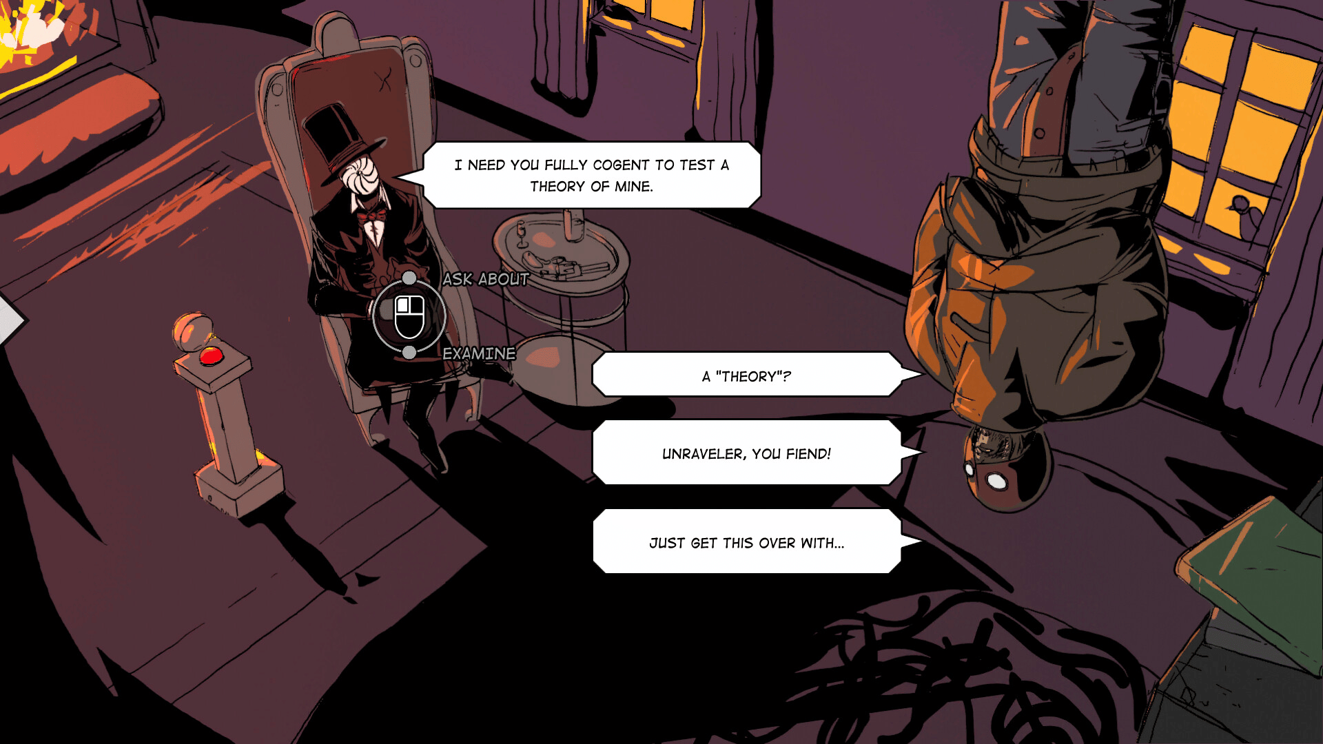 Hank: Straightjacket is a narrative bite-sized game combining traditional point-and-click gameplay with a time manipulation mechanic.