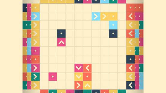 Blocks originally placed on the field of fixed and marked point. Each exhibited on the new unit has a direction of movement indicated by the arrow, and if it does not hold, then it starts to move in this direction as long as no other will face block or not go beyond the edge of the playing field. If three or more blocks of the same color are connected together at the sides (not diagonally), then they are reduced. Your task is remove all blocks from the board.