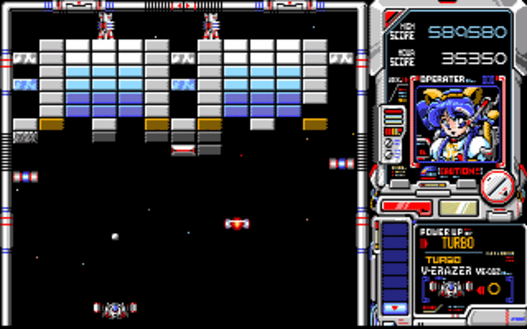 Cyberblock Metal Orange EX plays very similar to Arkanoid, but with a cool twist. Instead of powerups falling from random blocks, you get upgrade tokens. Upgrade tokens go to your upgrade bar. Pressing a button spends your upgrade tokens while the other can be used to shoot your zapper if you have that powerup. The upgrades you can get have crazy sci-fi names, but they basically do what you expect them to do. Speed up, multi ball, expand your paddle, that sort of thing. Managing your upgrades and customizing your paddle is a large part of the game and it is easily the most fun part of the game.