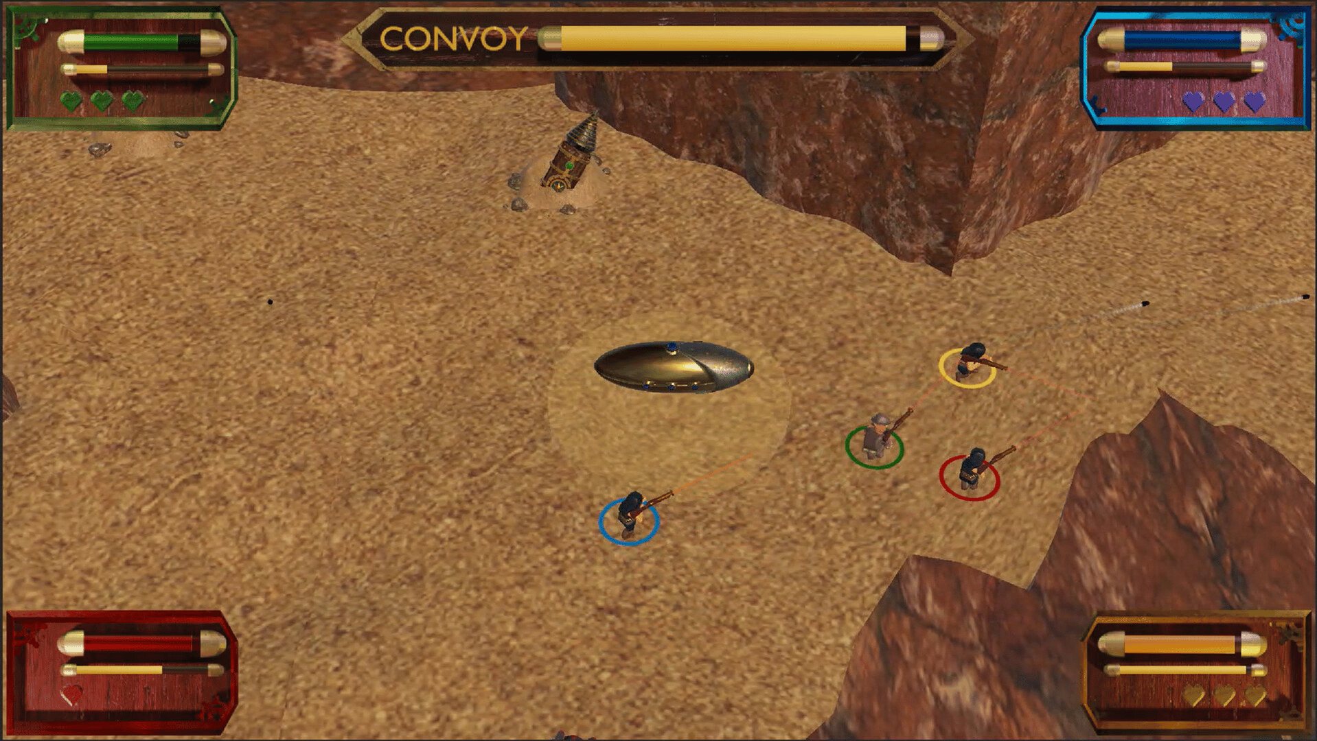 A steampunk twinstick shooter where you and your team need to work together to protect the Convoy.
