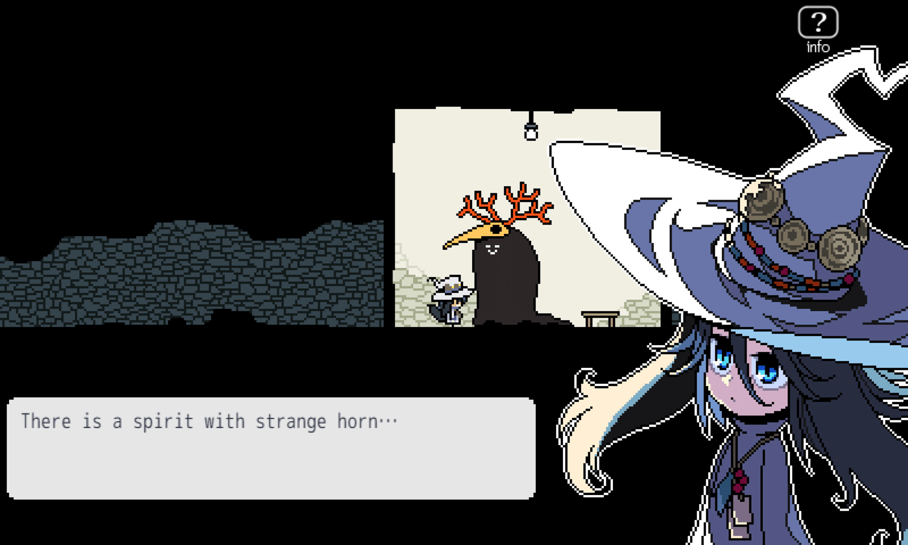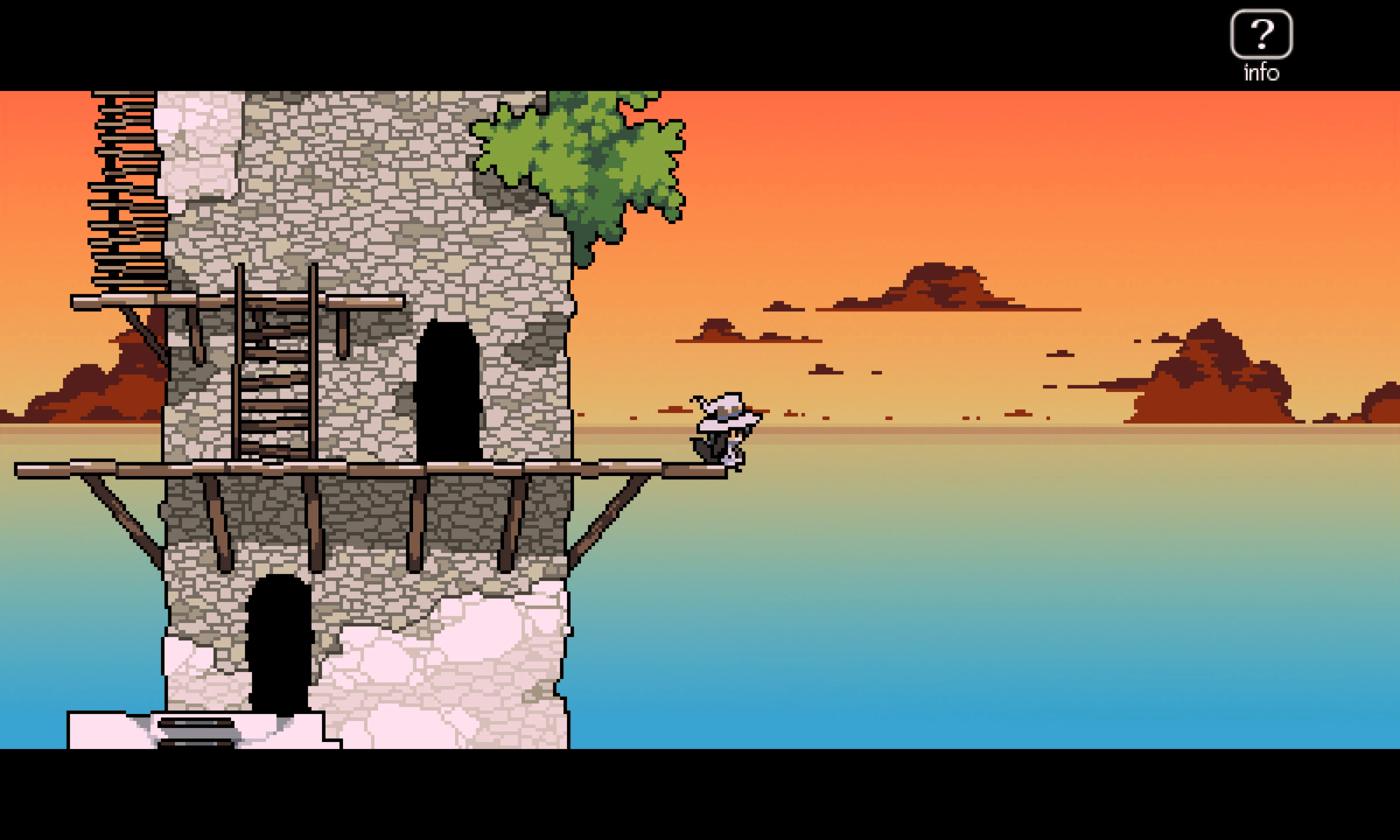 El Ne Rue is a simple pixel game where you take control of the witch Lumstea and walk around, exploring the ruins of a city mostly submerged in water.