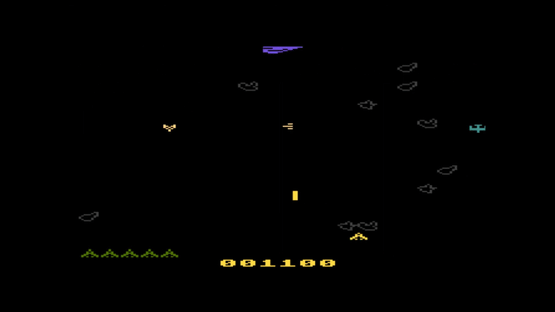 A 1981 side-scrolling shooter that featured an eight-direction joystick, a Mayday button that enables slow motion for five seconds, being able to speed up and slow down the ship's forward momentum, and the ability to crash into cavern walls.