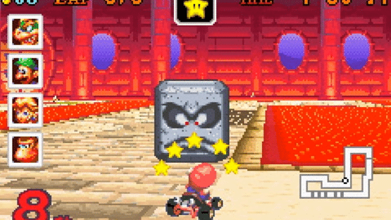 Classic Mario Kart action is back once again, this time in a colorful, lightning-fast game that you can take anywhere. Mario, Luigi, Peach, Toad, Wario, Yoshi and Bowser are all tearing up the track, tossing Koopa Shells and laying banana peels along the way. Mario Kart Super Circuit puts your driving skills to the test on 40 tracks, each littered with wild weapons and obstacles. Choose to play as any of your favorite characters as you speed around classic and brand-new tracks. If you're feeling combative, try out the creative weaponry (mushrooms, bananas, thunder bolts, and stars) in Battle mode. Feel like making some friends eat your dust? No problem. Four players can compete in Mario Kart Super Circuit using only one Game Pak! If each player has a copy of the game, bonus features and new modes of play become available.