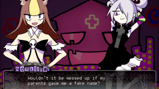 A demon girl? (Are those horns a fashion accessory?)… a girl, has lost her jacket. Please help her find it. Well, actually you're more of a third party. We can't tell if you're in the game and they just ignore you for the duration of it or if you don't exist in it.