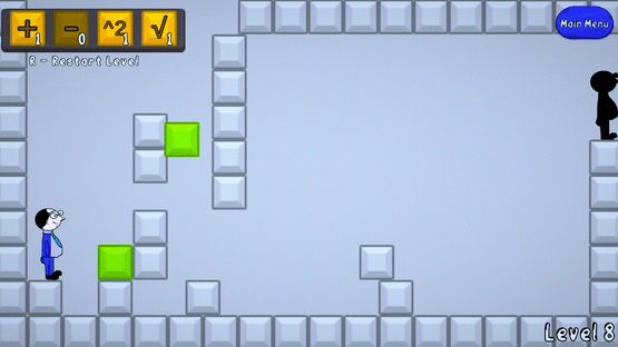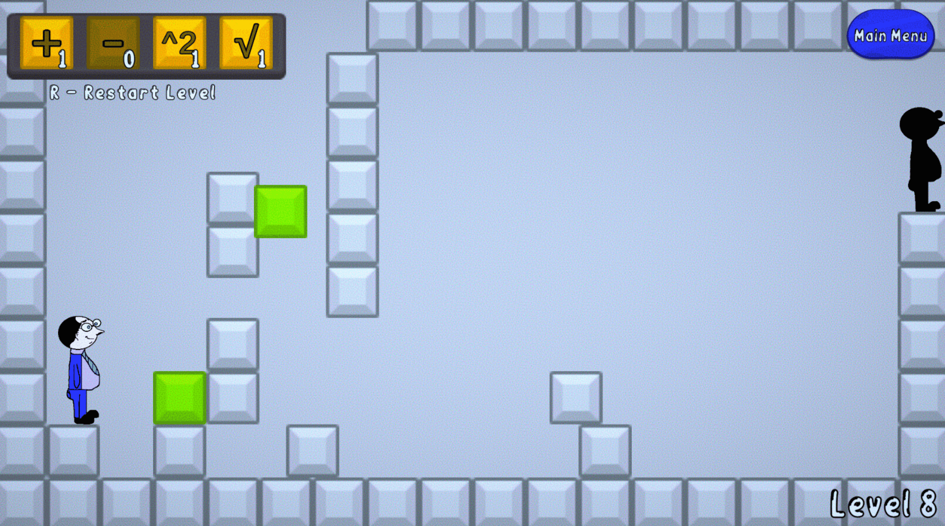 Mr. Mat Hematic is a short, fun, 2D platformer puzzle game where you must use given mathematical operations to alter the environment so you can move around. To complete a level, you need to reach the black door.