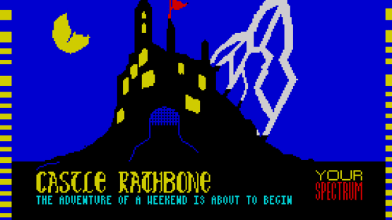Text Adventure that appeared as a type-in program in issue 17 of Your Spectrum magazine. It also appeared on that month's cover-mounted Digi-Tape, already typed up and ready to play. The plot is that you have to help three members of the Your Spectrum team escape from the confines of Castle Rathbone, the mythical place where Your Spectrum magazine is created. There are four escape routes, one for each of the team members and one for you, and you can't use an escape route meant for one member for another. Commands are entered in the usual text adventure style, by entering them in via keyboard.