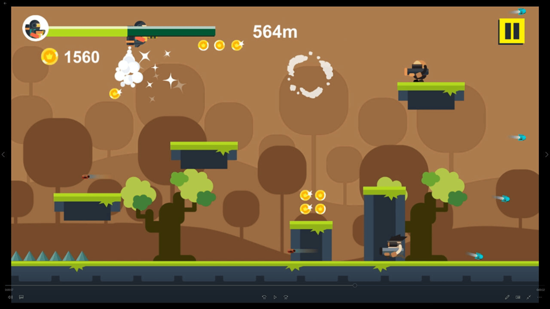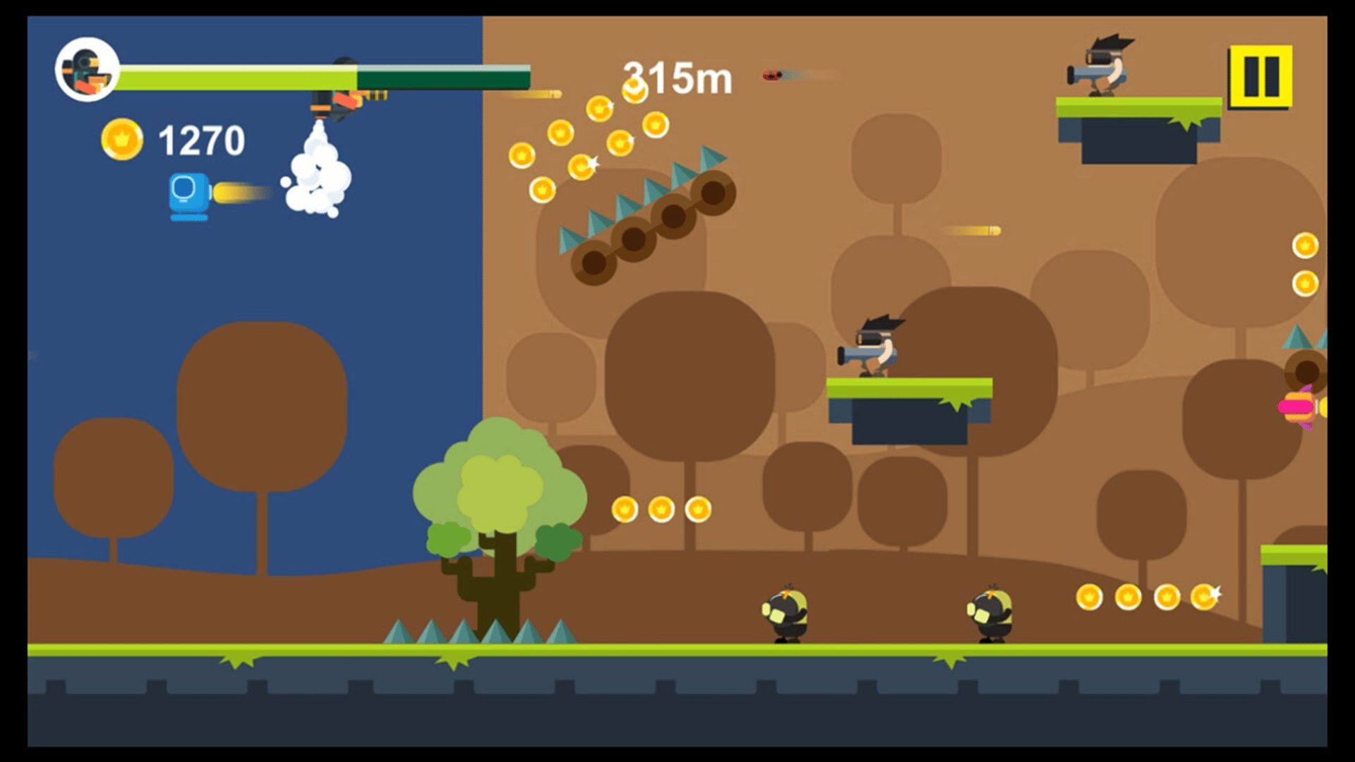 'Jet Fire' is a parkour+shooting game. Players not only need to avoid terrain obstacles through the ejector, but also kill the enemy through shooting.
