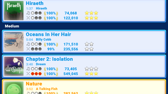 Melod is a classic music/rhythm game that lets you play great songs by a wide variety of indie artists—discover new music and chase high scores! There are two types of instrumentals to play: "Melody" and "Rhythm"! Be warned: "Rhythm" mode adds a fifth "bass pedal" note that drastically increases the level of difficulty. Charts reflect the notes of the song, and your part drops if you miss notes. Explore the inner machinations of the music in the game! You can play the game on "Chill" or on "Challenge" mode. "Chill" gives an easier, relaxing experience, while "challenge" gives the full experience, pushing your music-gaming skills as far as they can go.