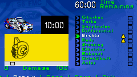 Colin McRae Rally 2.0 on the Game Boy Advance adapts the gameplay of the PC/console title to the handheld's capabilities. The game features five licensed cars (Ford Focus, Mitsubishi Lancer, Toyota Corolla, Subaru Impreza, Ford Puma) and tracks in six different countries (Finland, France, Sweden, Australia, Kenya, United Kingdom). The game's main rally mode takes the player through a championship, with each of the six countries' rally tracks consisting of six stages each. The game takes the simulation approach, with the player being able to adjust suspension, gearbox, steering, tyres and more to fit driving style and road conditions. Damage acquired during a race must be repaired between stages at the expense of time. Besides driving the full championship, it is also possible to practice single rallies and even single stages - a time trial mode for single stages is also available. Tracks not available to be selected from the beginning must be unlocked by winning the championship first. Besides rally mode, the game also offers arcade mode, which features six tracks for conventional circuit racing. The circuits can be driven as time trials, single races or a championship. This mode also supports multiplayer via the link cable, only requiring a single cartridge. During racing, the track is displayed via a Mode-7-style scaling/rotating bitmap engine, with the cars rendered as texture-mapped polygons. During rally races, the game features a co-driver calling out road features ahead via digitized speech, which is provided by Colin McRae's actual co-driver Nicky Grist.