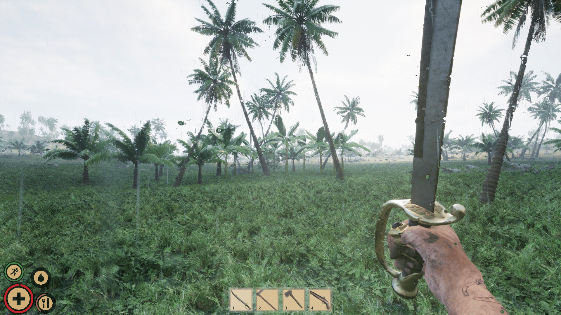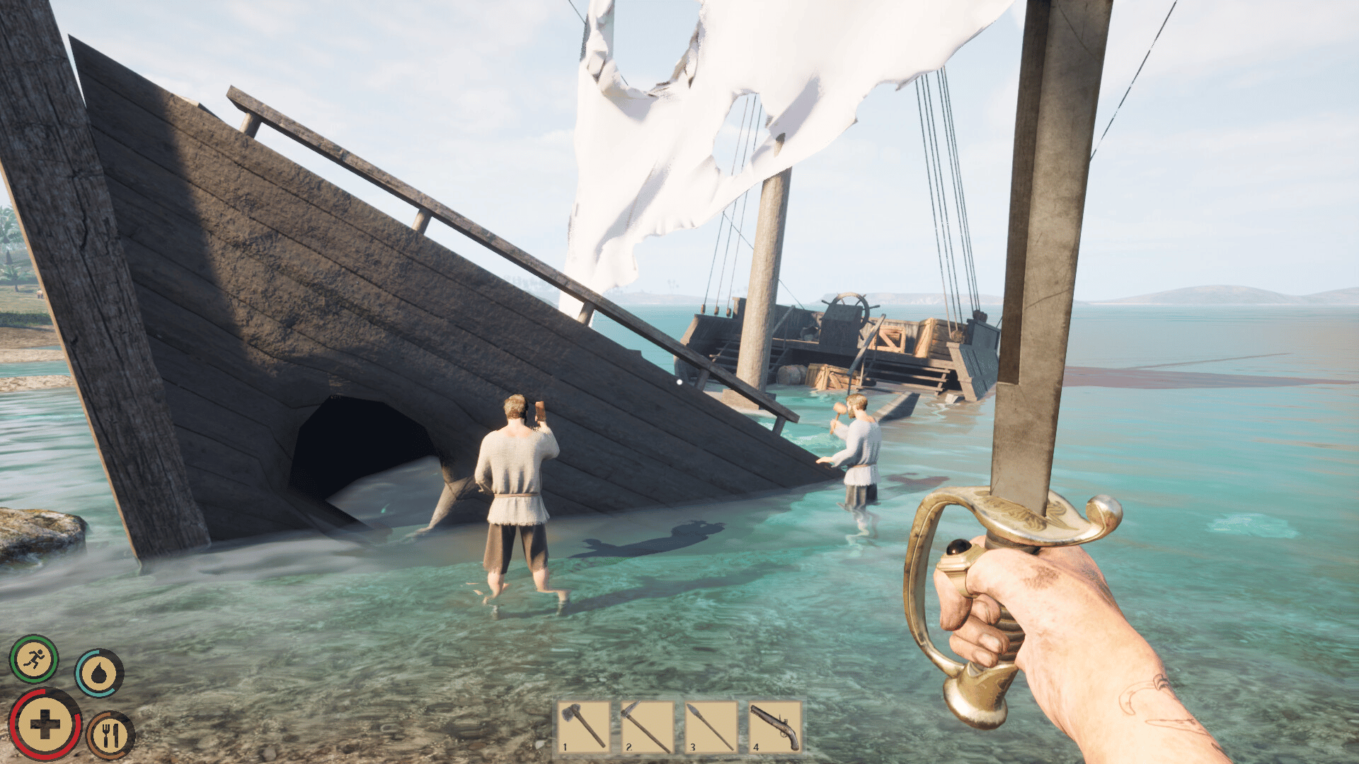 You and your crew have been shipwrecked on a tropical island in the late 1600s. At the beginning of the adventure, you find yourself with only a few basic supplies, including ropes, sticks, and stones. With skill and cunning, you can survive on the island and thrive as a pirate crew.