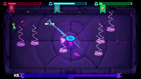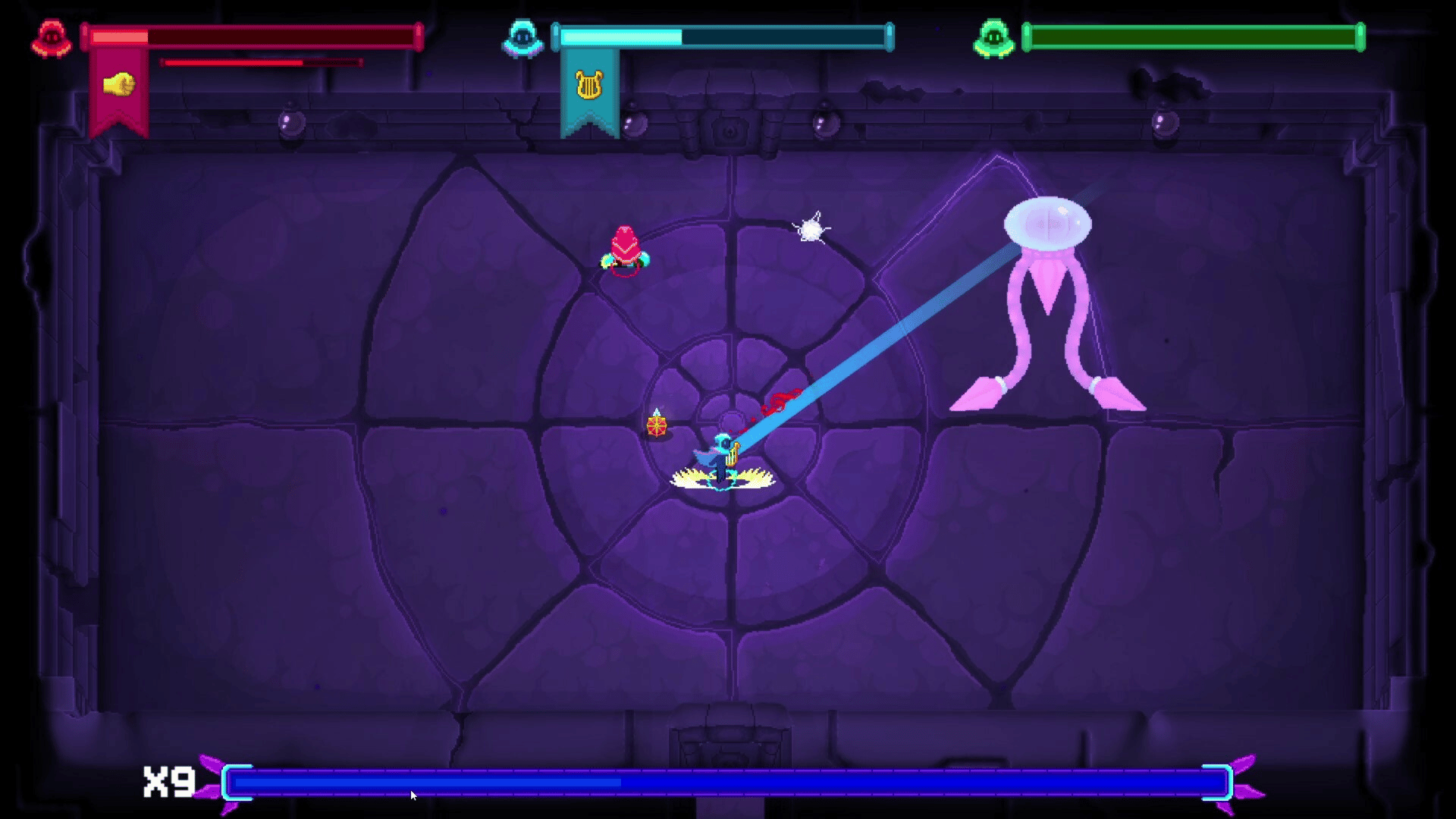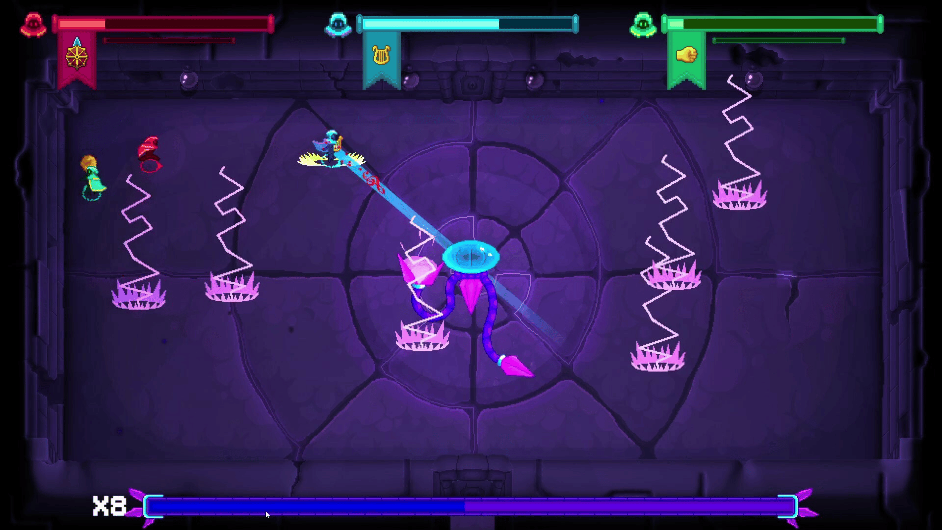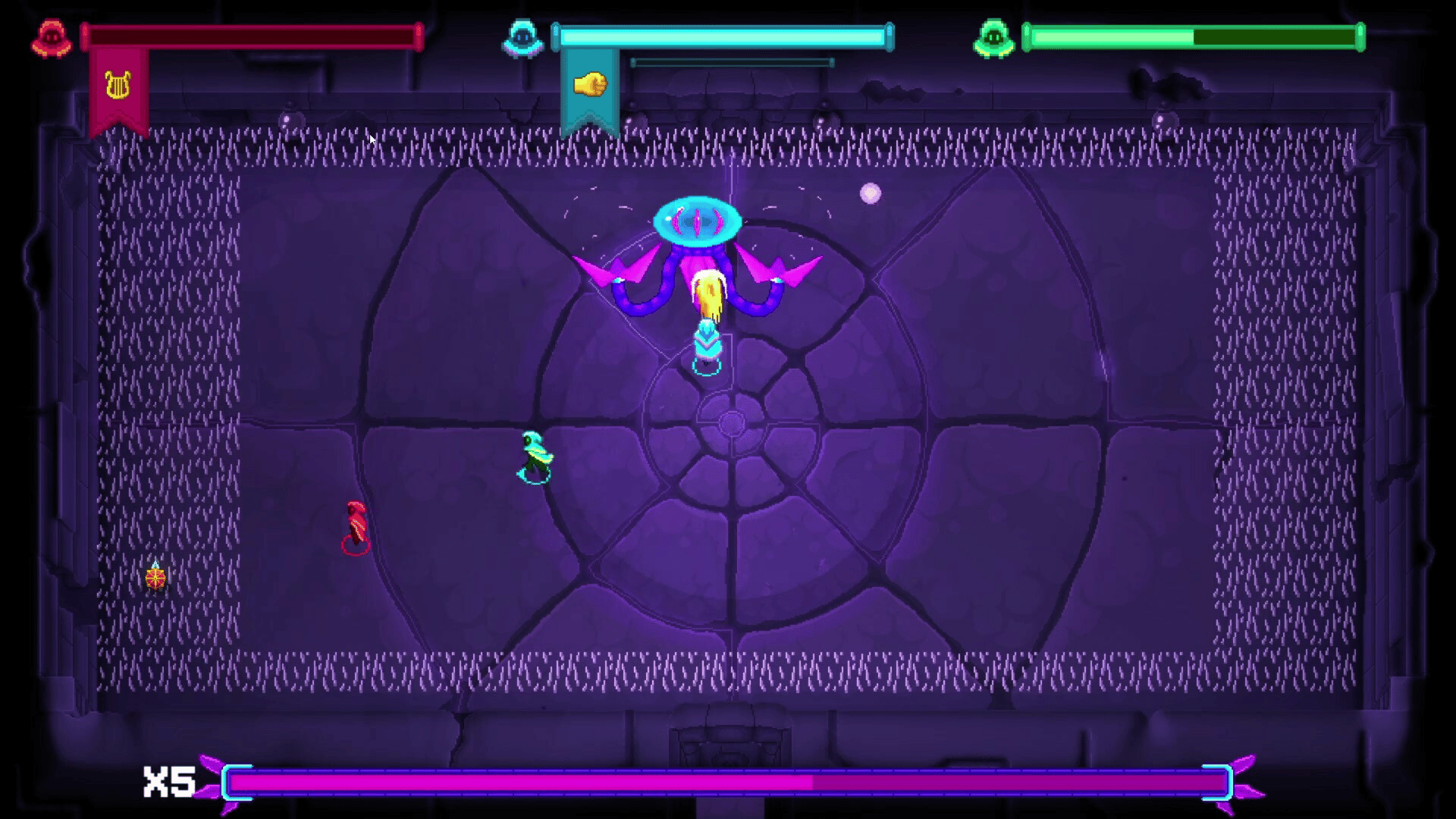 Out of Three is a local multiplayer Boss Rush game that can be played with 3 players. The goal: defeat the Boss Gorgone by cooperating with your team members. You and your 2 faithful comrades find yourselves in an unknown dungeon, face to face with a giant medusa. Your fate seems inevitable!