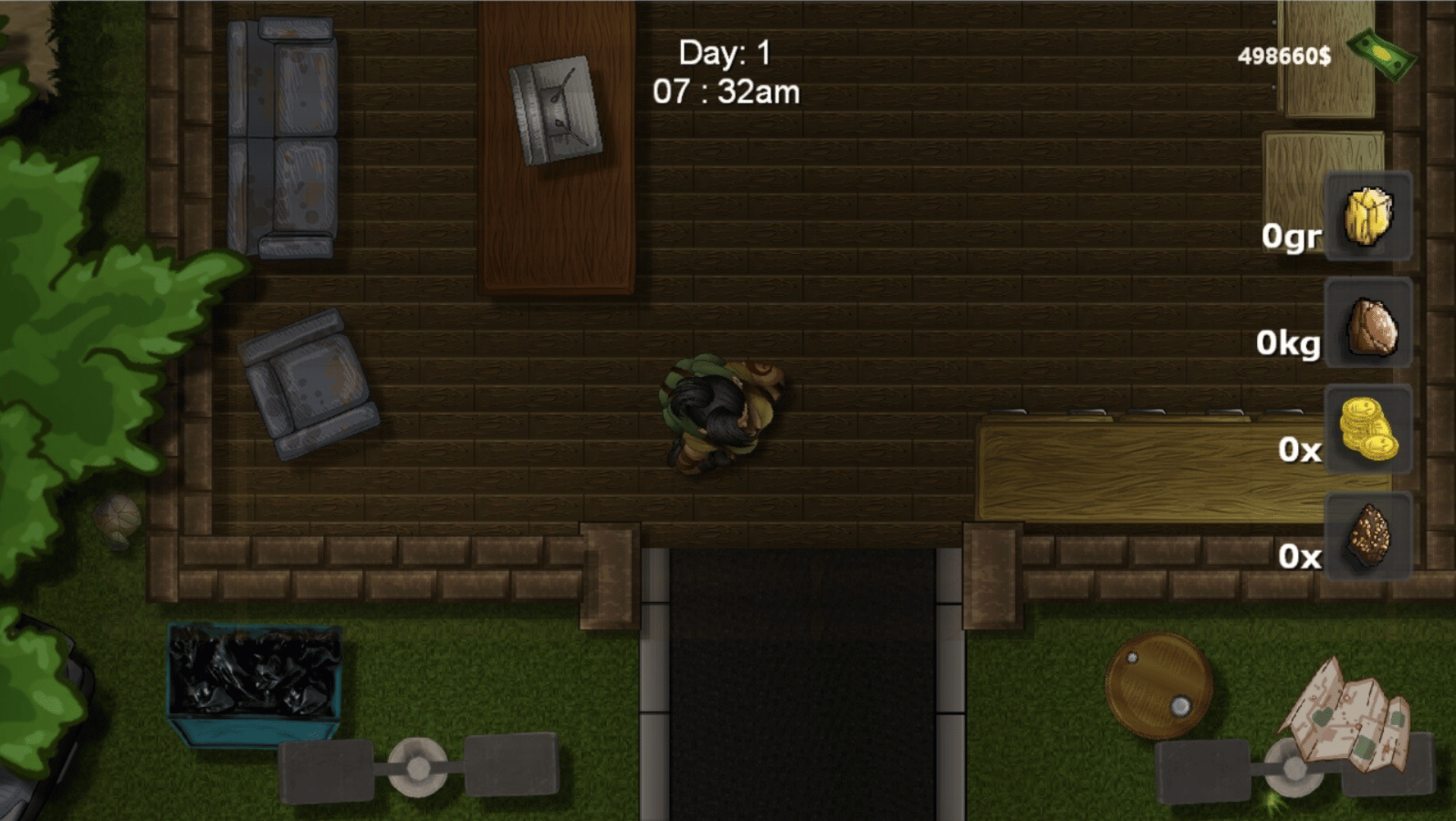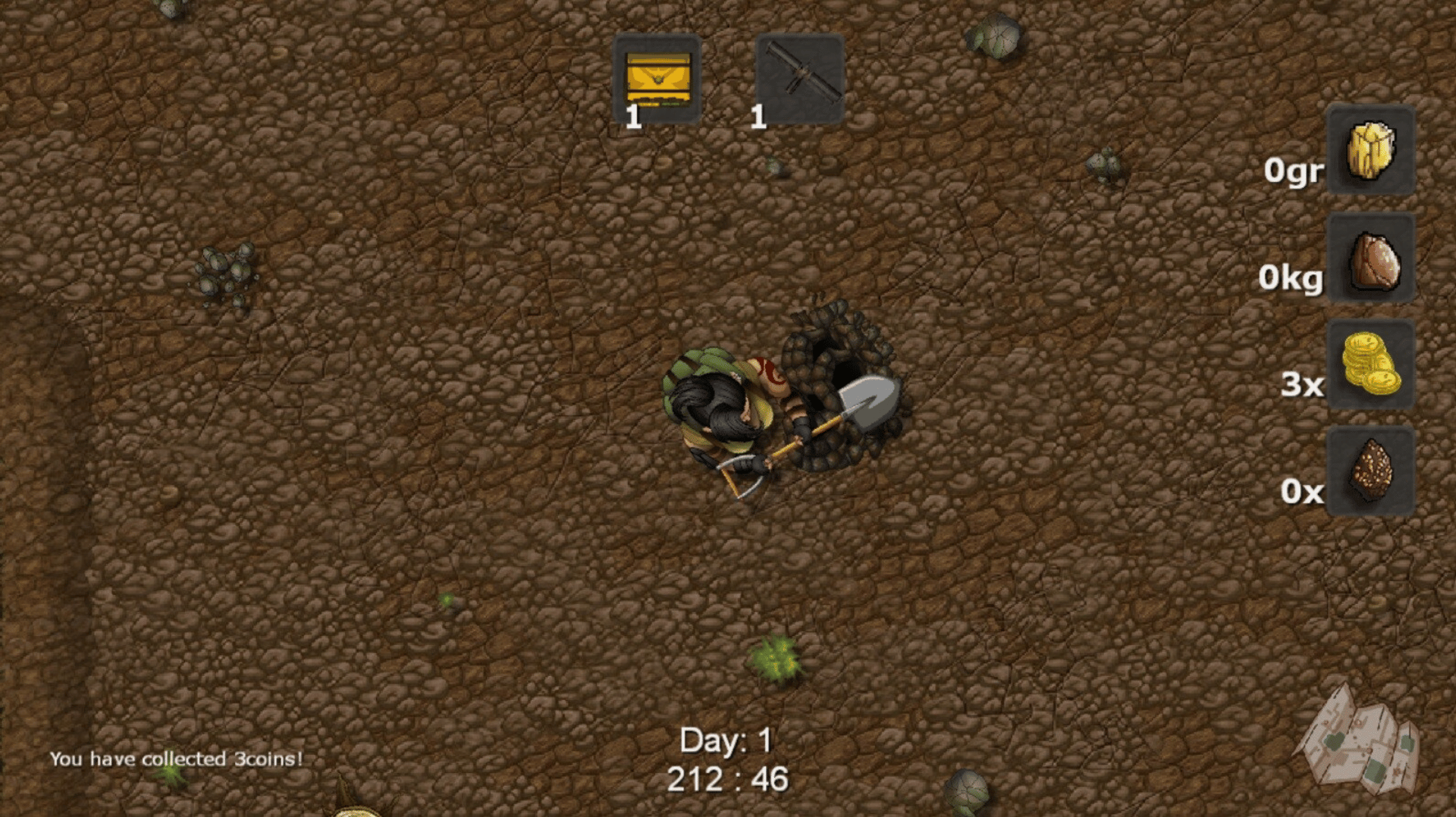 2D platformer with a view from the top. In the game you have to buy equipment to search for various items. Metal detectors, shovels, will help you in this. You come to the new land, you need to buy land and start searching for gold and coins, as well you will come across junk.
