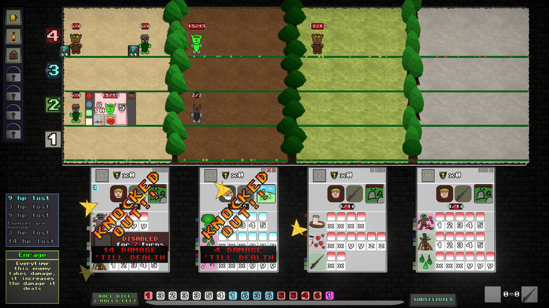 Knights of Dice is a dice-rolling game, which aims to please gamers that are into boardgames, turnbased games, strategy, and a sprinkle of party-RPG and rougelite.