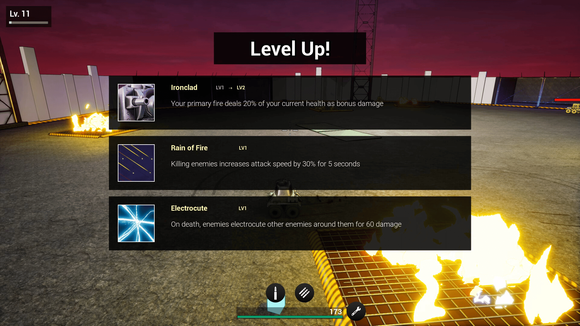 Rogue Tank is a chaotic 3D tank shooter with rogue-lite elements. — Shoot, zap, burn and crash through waves of elite enemies. Enhance your tank by creating deadly combinations of upgrades and become a force of mass destruction!