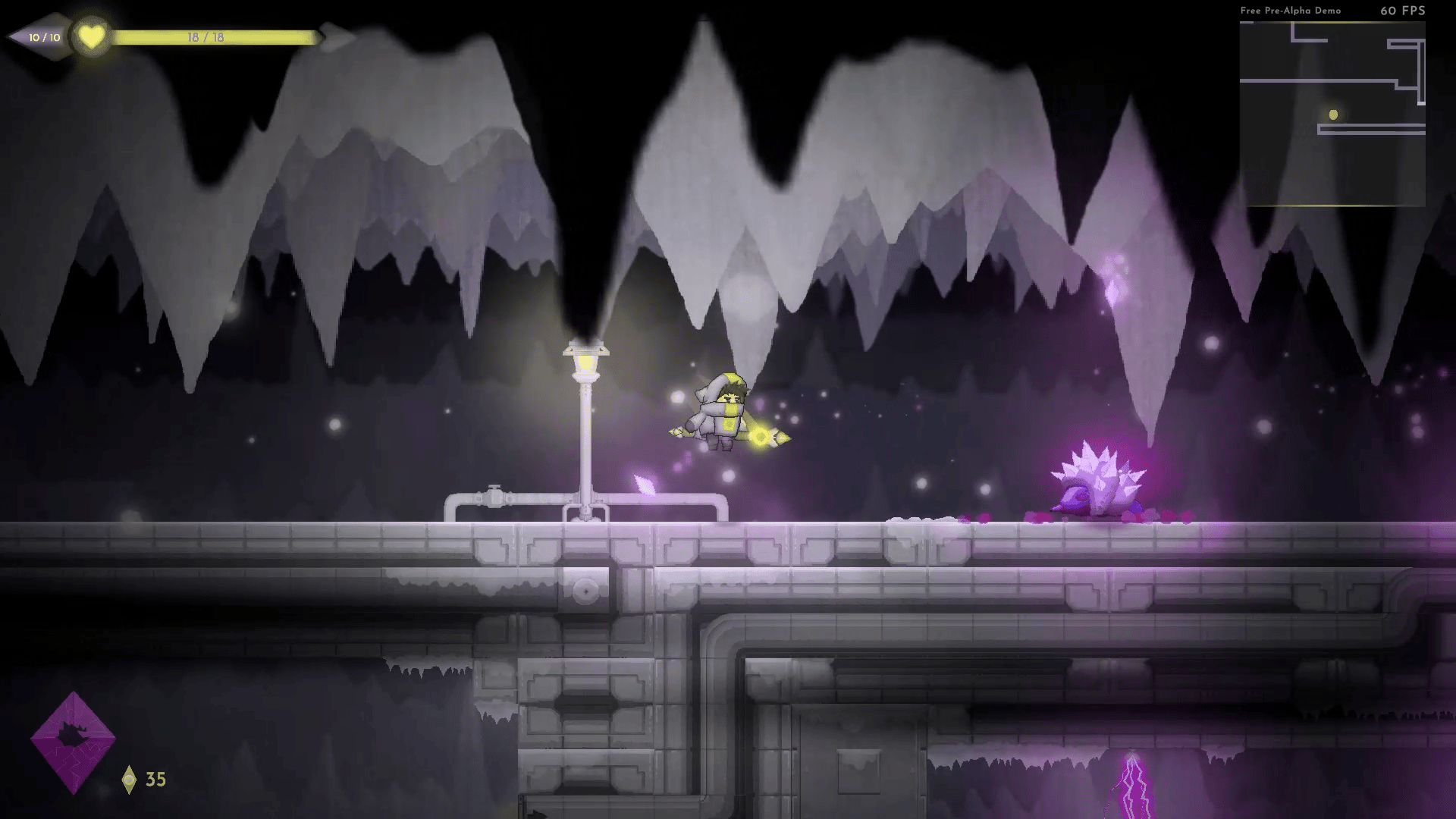 Unleash your magical spear! Explore a vast inter-connected world, battling enemies sent by Culex, the dark mosquito deity. Throw, recall, and use your spear as a platform through this minimalistic metroidvania made by one developer!