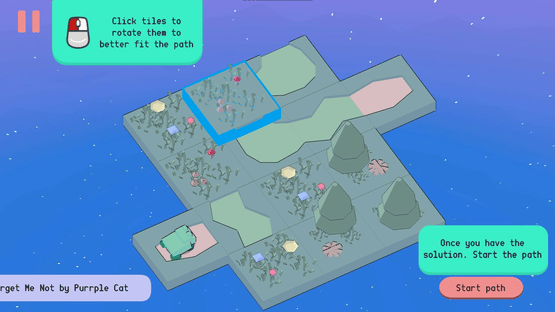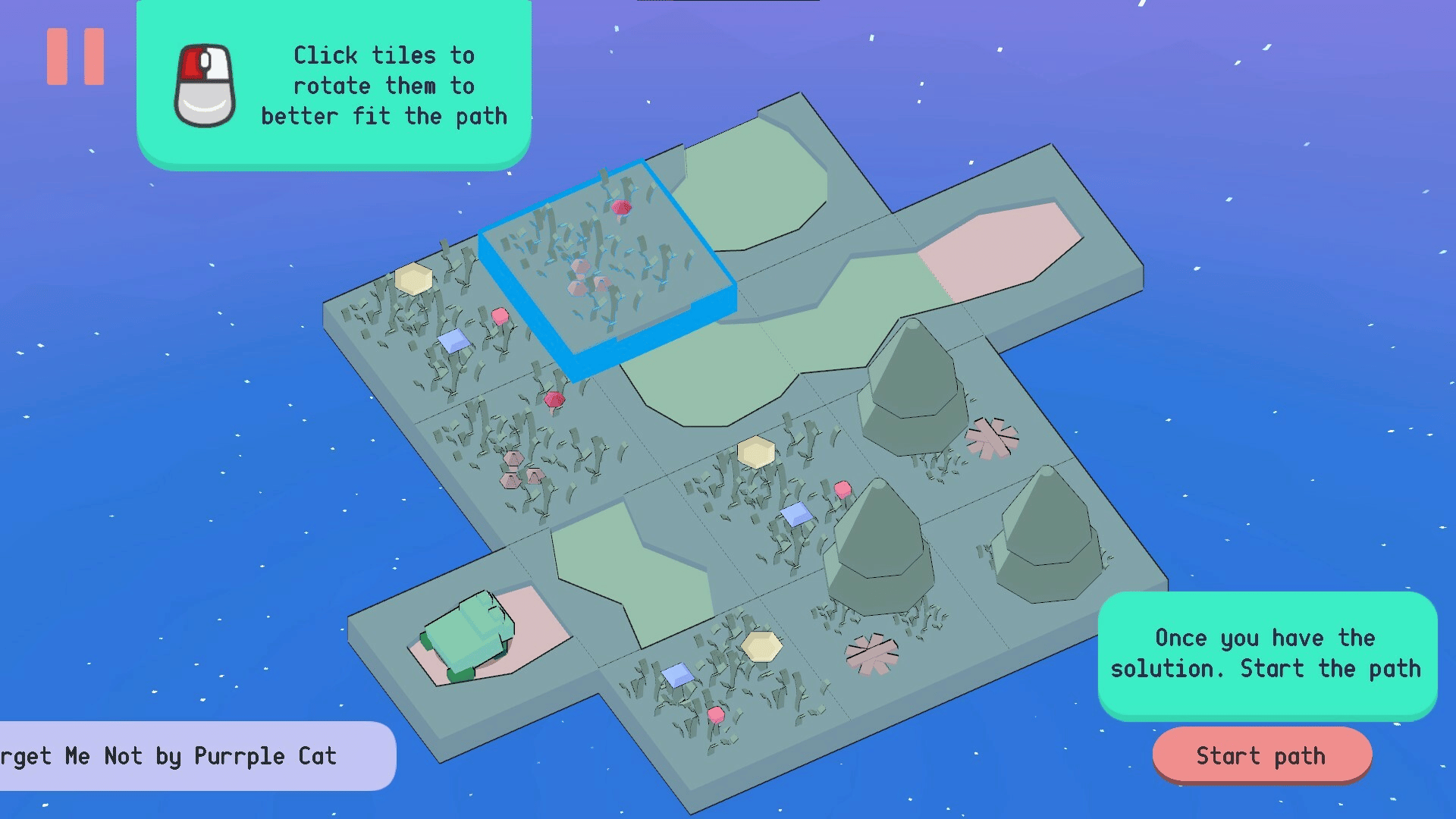 Help the little frog to safely reach the other side avoiding the hazards and dangers within the forest. Move the tiles around you to find one of the hidden paths that will lead you to your goal.
