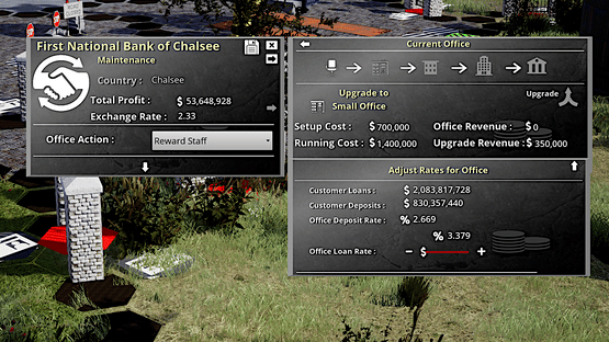 In a world where banks control countries, finances and armies, manage your bank and army to dominate the world. Based on actual banking principles, create relationships and strategies to manage finances and armies and lead your bank in turn-based grid game play