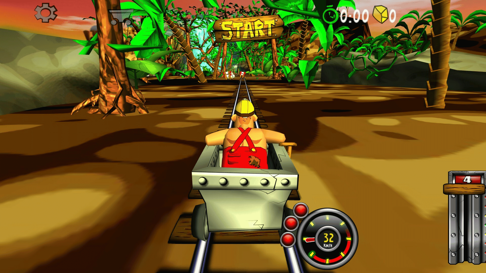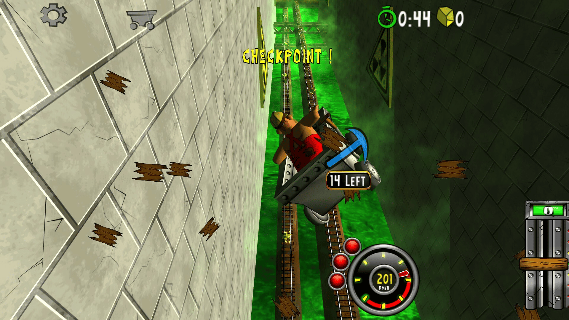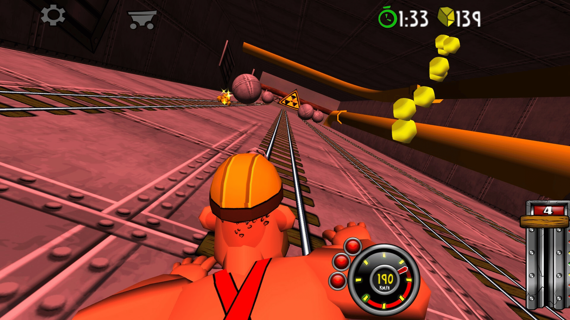 Blast with amazing speed through mines and caves. Break through wood, stone- and steel. Evade flowing lava, falling rocks and hazardous machinery. Race, jump, fly with amazing speed across rivers and ravines. Looping, doors, saws, fire, high voltage, rocks, traps and more.
