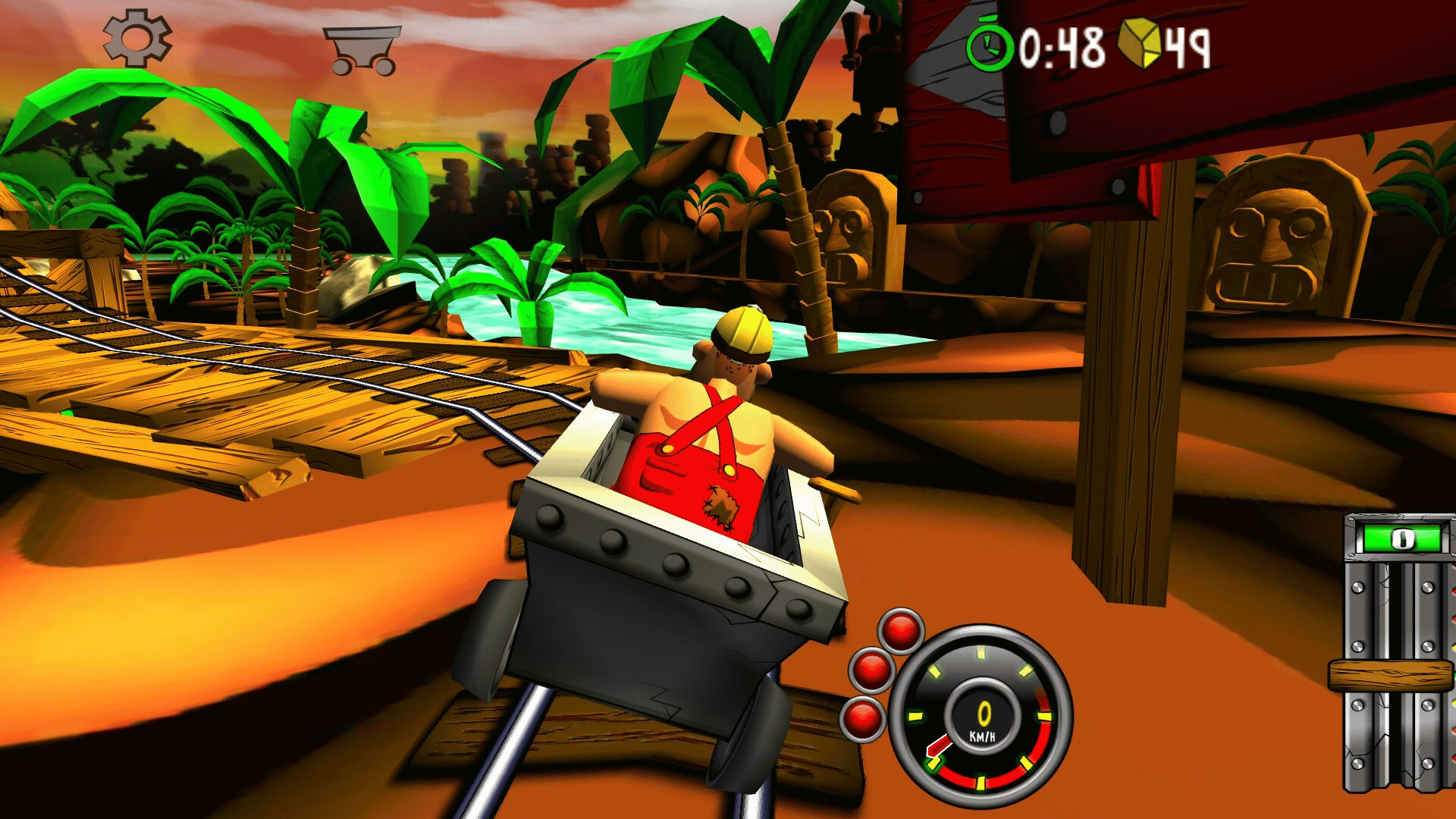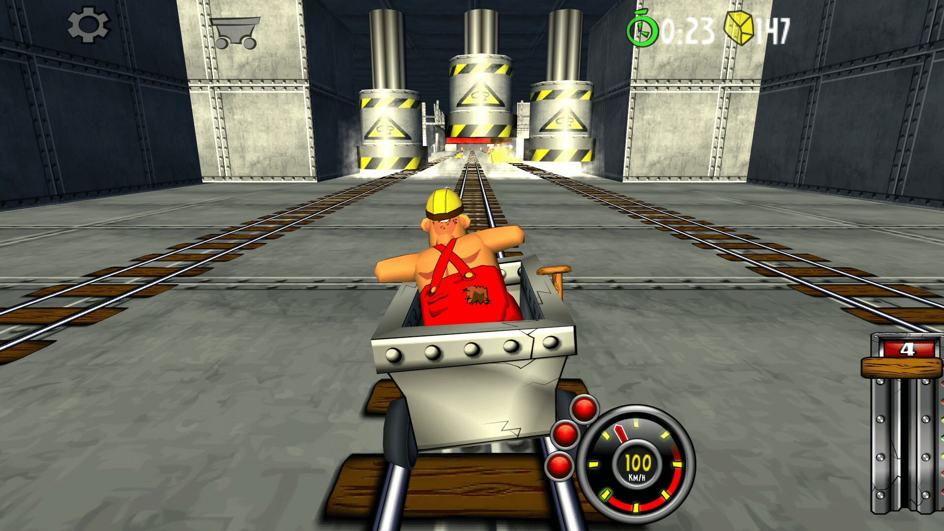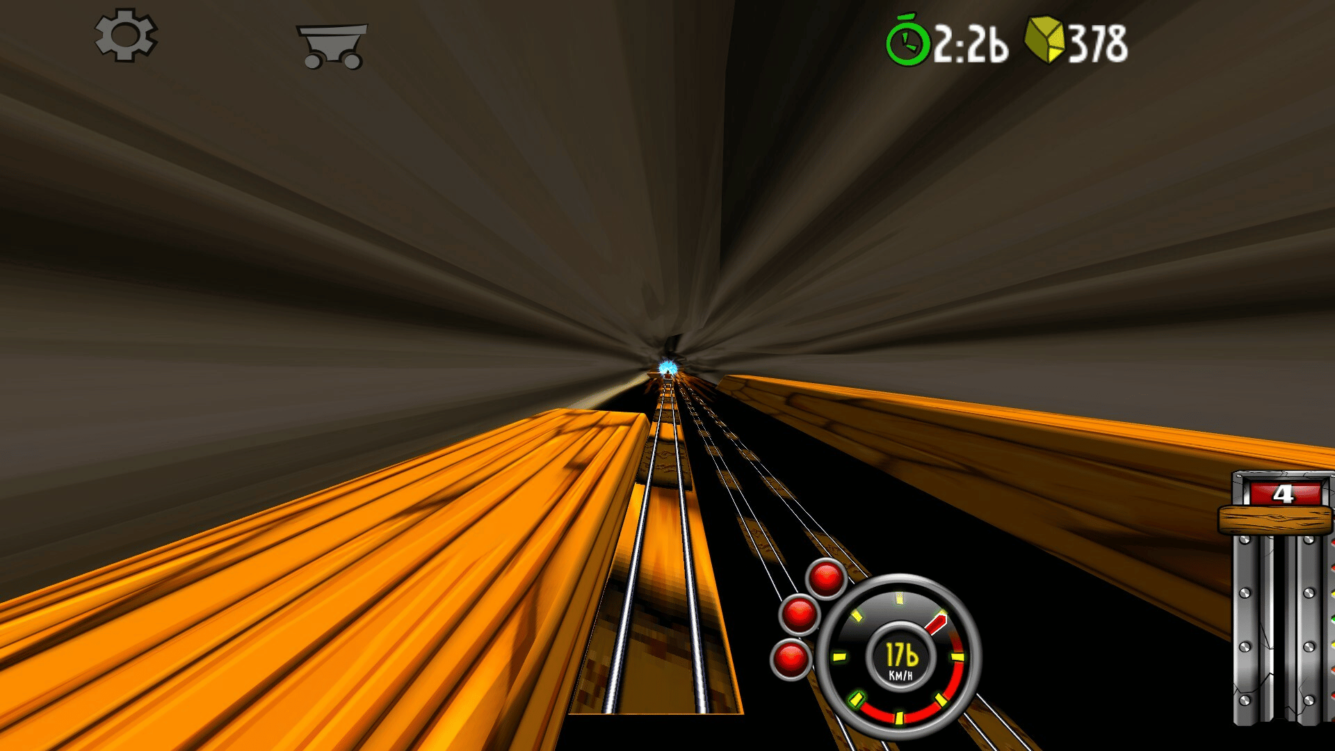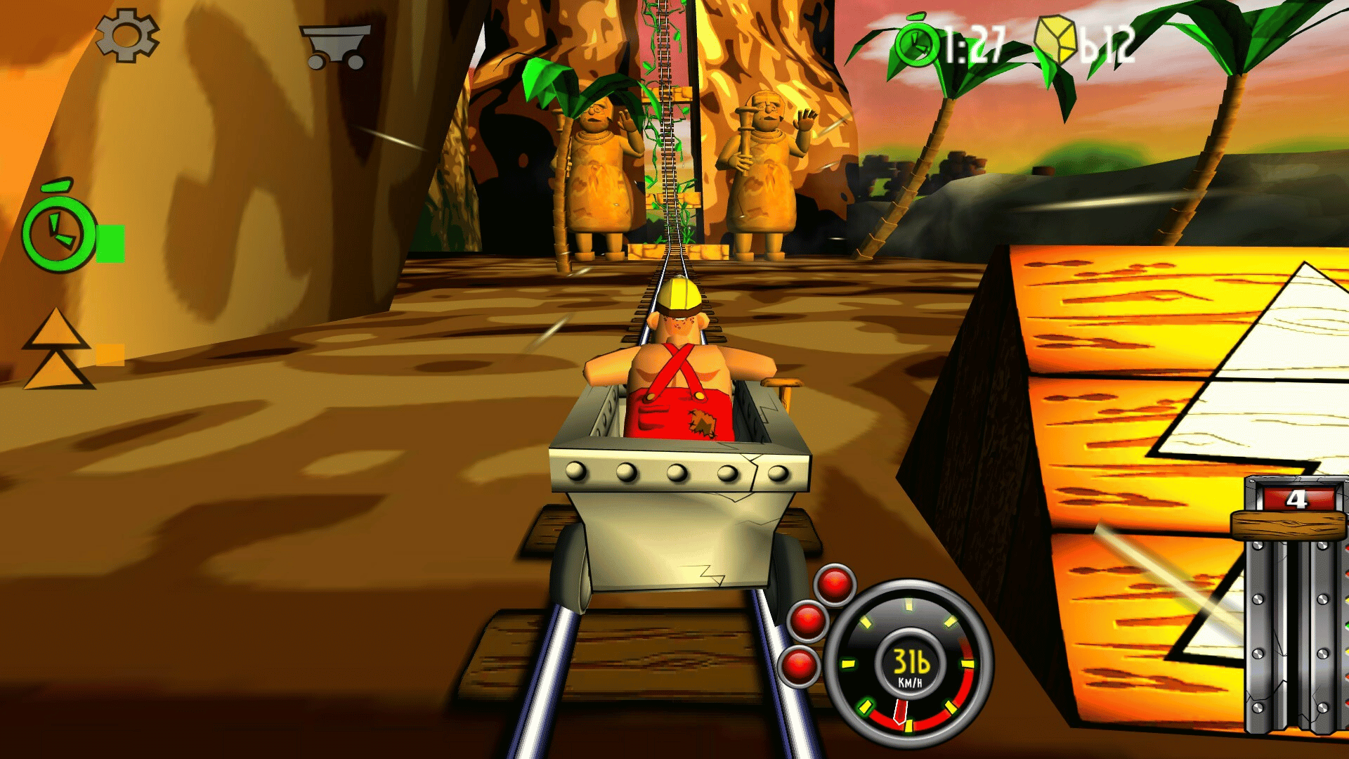 Blast with amazing speed through mines and caves. Break through wood, stone- and steel. Evade flowing lava, falling rocks and hazardous machinery. Race, jump, fly with amazing speed across rivers and ravines. Looping, doors, saws, fire, high voltage, rocks, traps and more.