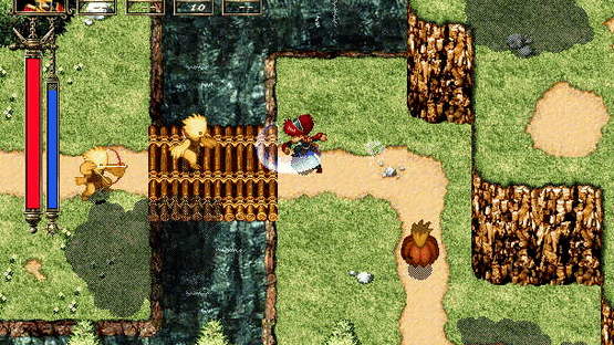 As a child, Jino's ailing uncle tells him of a powerful treasure, the Orichalcum, lying unclaimed in ancient ruins he once attempted to explore. Jino vows to grow strong enough to finish his uncle's work. Years later, the young but unprepared adventurer collapses outside the town of Encia. He recovers upon healing at the local inn, then fights further into the surroundings of the capital city Delphi. Others also want the fabled Orichalcum, from his magic-using ally Tia Chanti to the antagonistic sorcerer Thales. In the end, who among them will revive and reclaim the land's hidden power? Wander Wonder is a unique overhead 2D action-RPG by Compile, originally released in 3 episodes via their Disc Station digital magazine starting in October, 1999. Jino can jump, slash, and use a mix of items, tools, and special moves to explore and fight his way across the land. Weapons degrade with use, but are frequently found as loot or merchandise, adding an element of resource management and incentive to repair arms at blacksmiths. The game progresses in a flip-screen style a la classic Zelda or Ys; multiple complex overworlds and dungeons await you. Finally, there's considerable post-game content, from new side-quests to a 500-floor mega-dungeon!