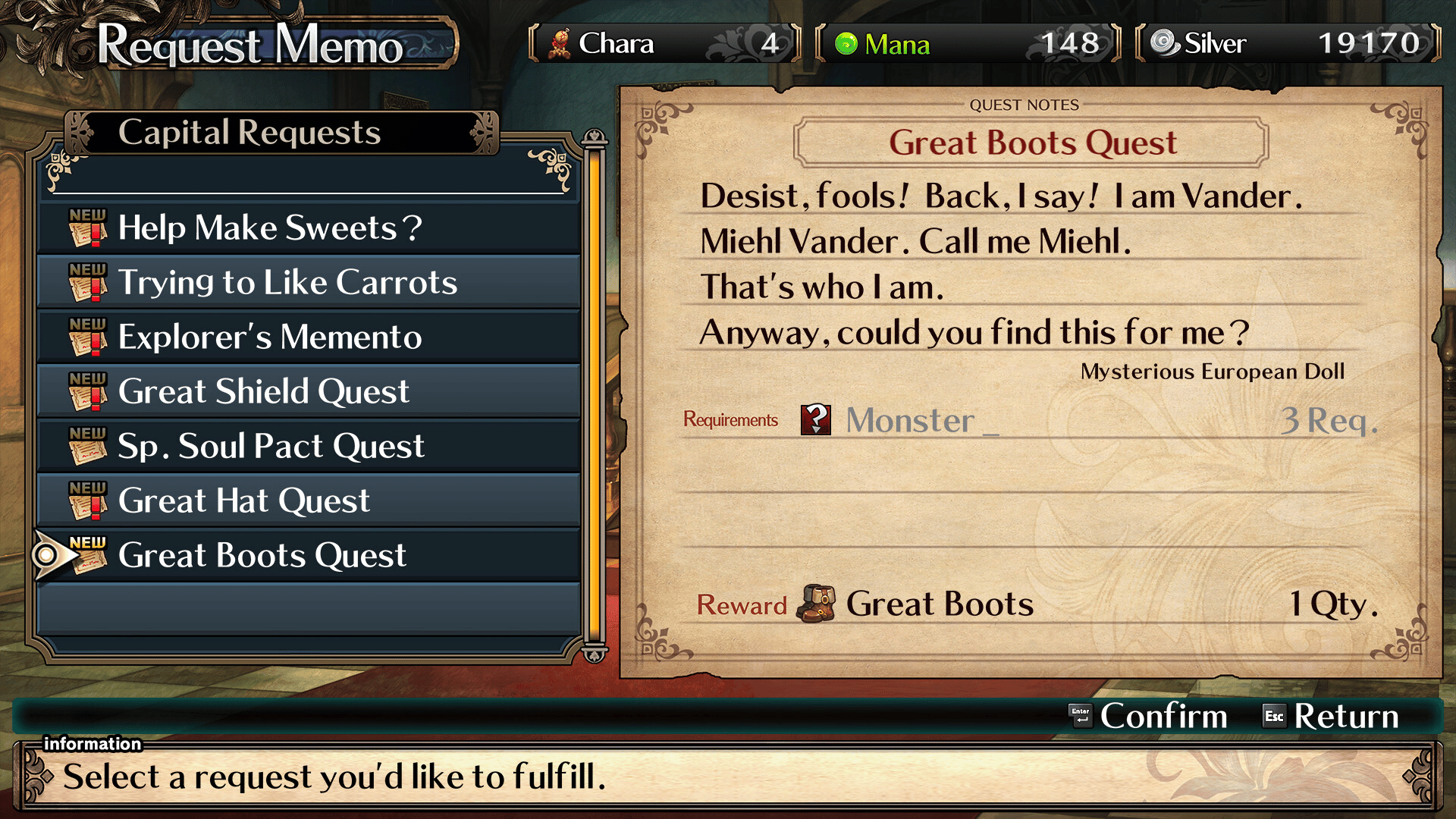 Delve into the depth of the Labyrinth of Galleria with this DLC Bundle which includes three quests: Special Soul Pact Quest, Great Hat Quest, and Great Boots Quest.