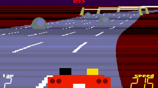 This pseudo-3D sports car driving game has you racing the clock to complete 4 laps around each track. Like OutRun and other classics that inspired it, you just have a basic accelerator, brake, and low-to-high shifting at your disposal. Round those corners fast! Polestar offers 2 courses, each with 4 stages. There's also a time attack mode for playing each stage individually, so that you can practice one at a time or simply go for the fastest times.