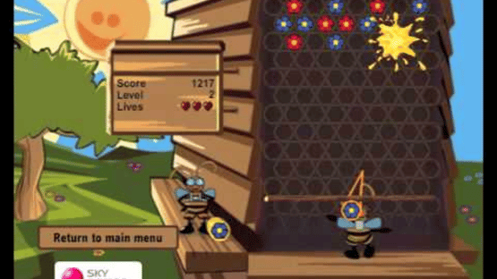 Beehive Bedlam is a game playable on Sky TVs in the UK using your television's remote control. The player must shoot coloured bubbles to the top of the screen to make combinations of three or more of the same bubble to clear the board in the style of Puzzle Bubble (Bust-A-Move).